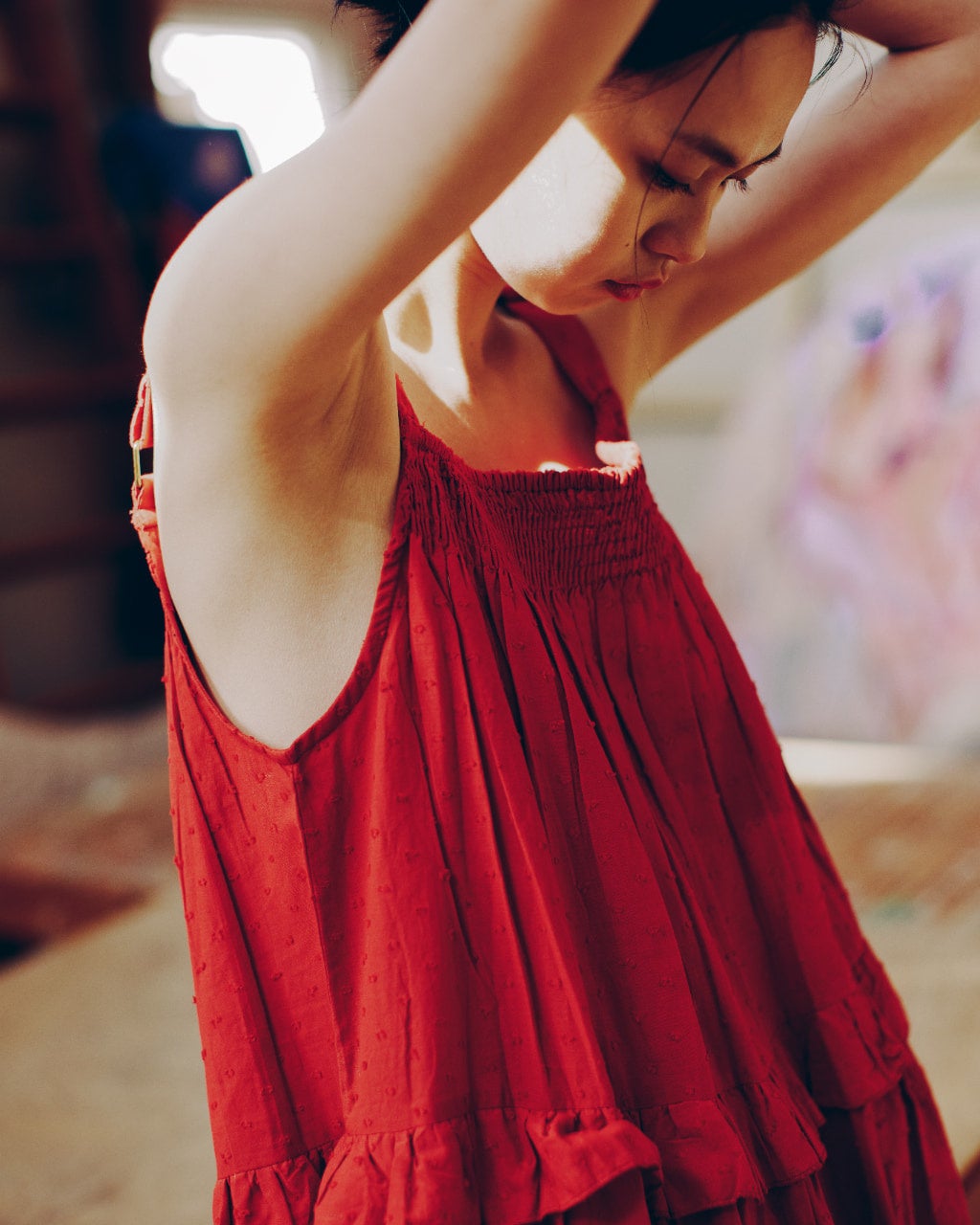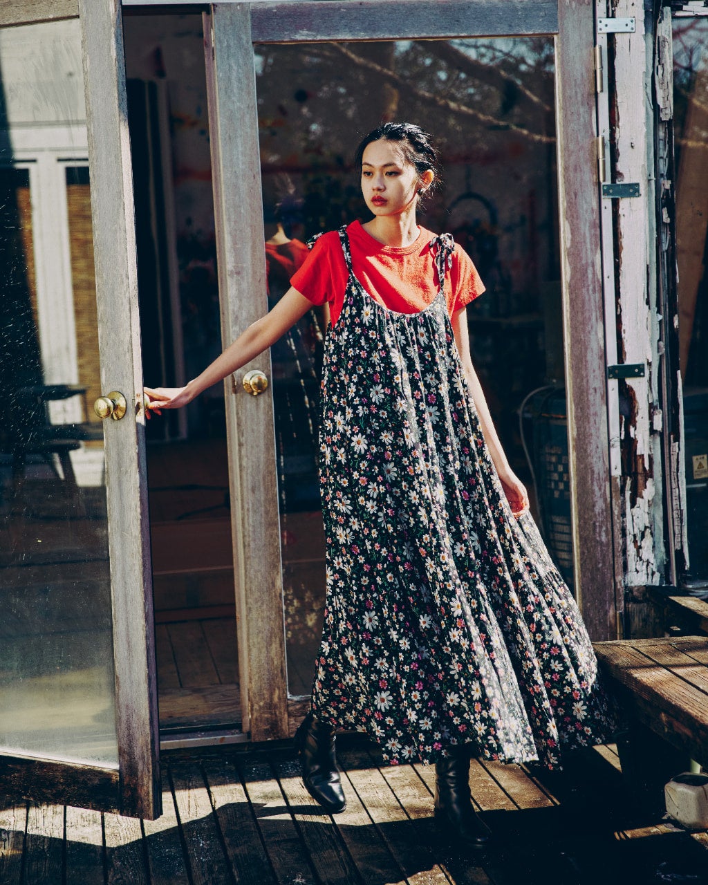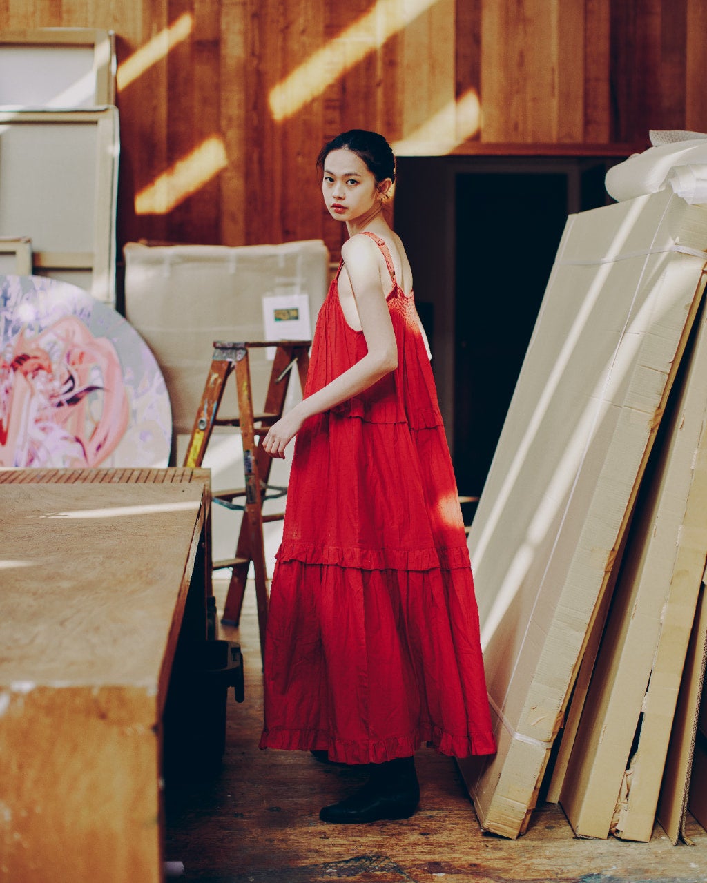 Freadaの代名詞ともいえるワンピースから、今期はFreadaらしいエスニックテイストのカラフルなレッドが登場。