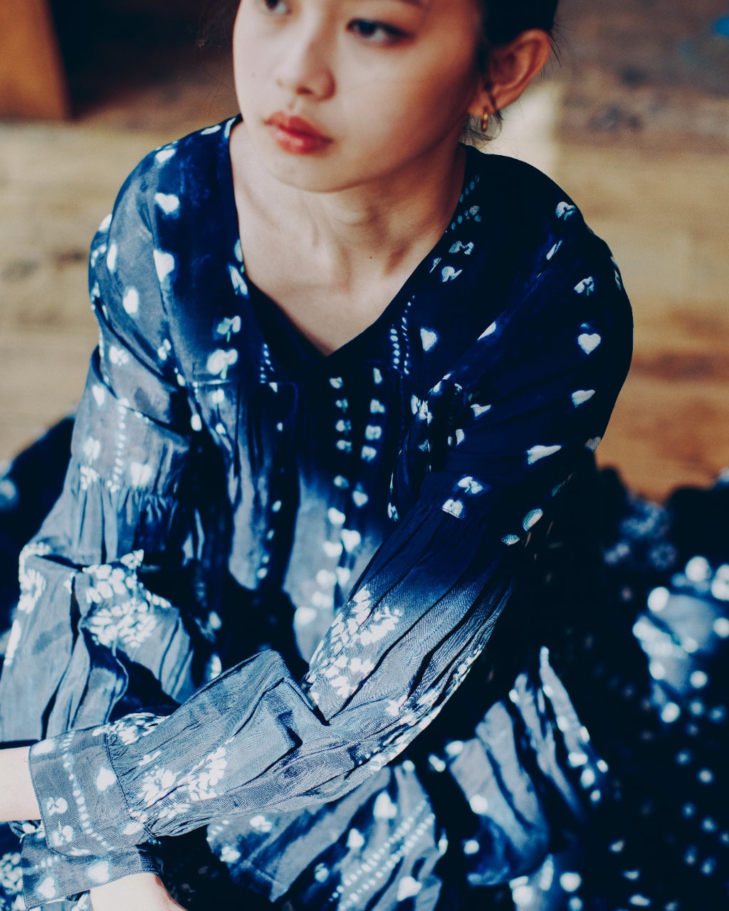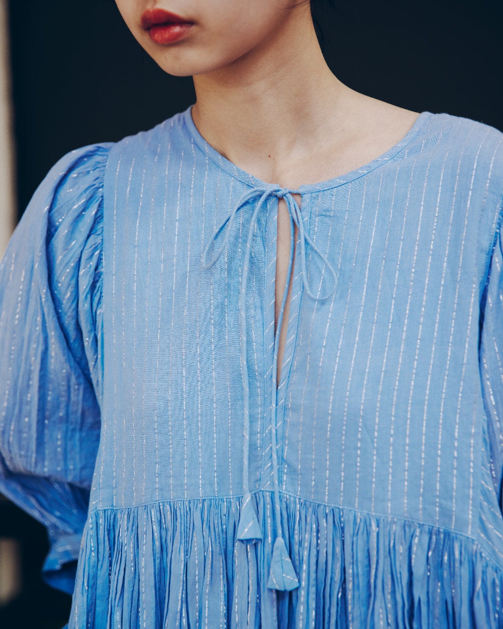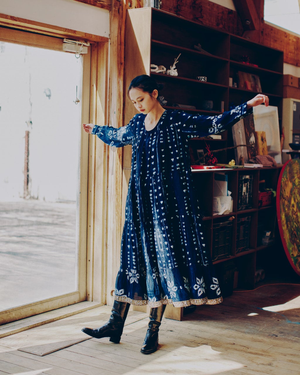 インドらしいドビー生地をふんだんにつかったワンピース。