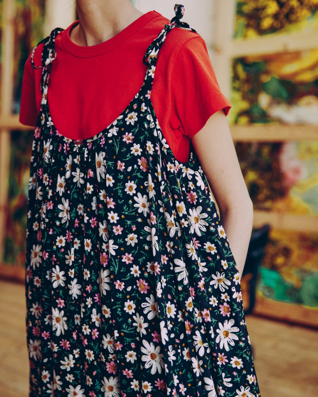 量感たっぷりのやわらかなレーヨンが風にそよぐキャミドレス。毎年人気の型が肩紐の仕様を変えて登場です。