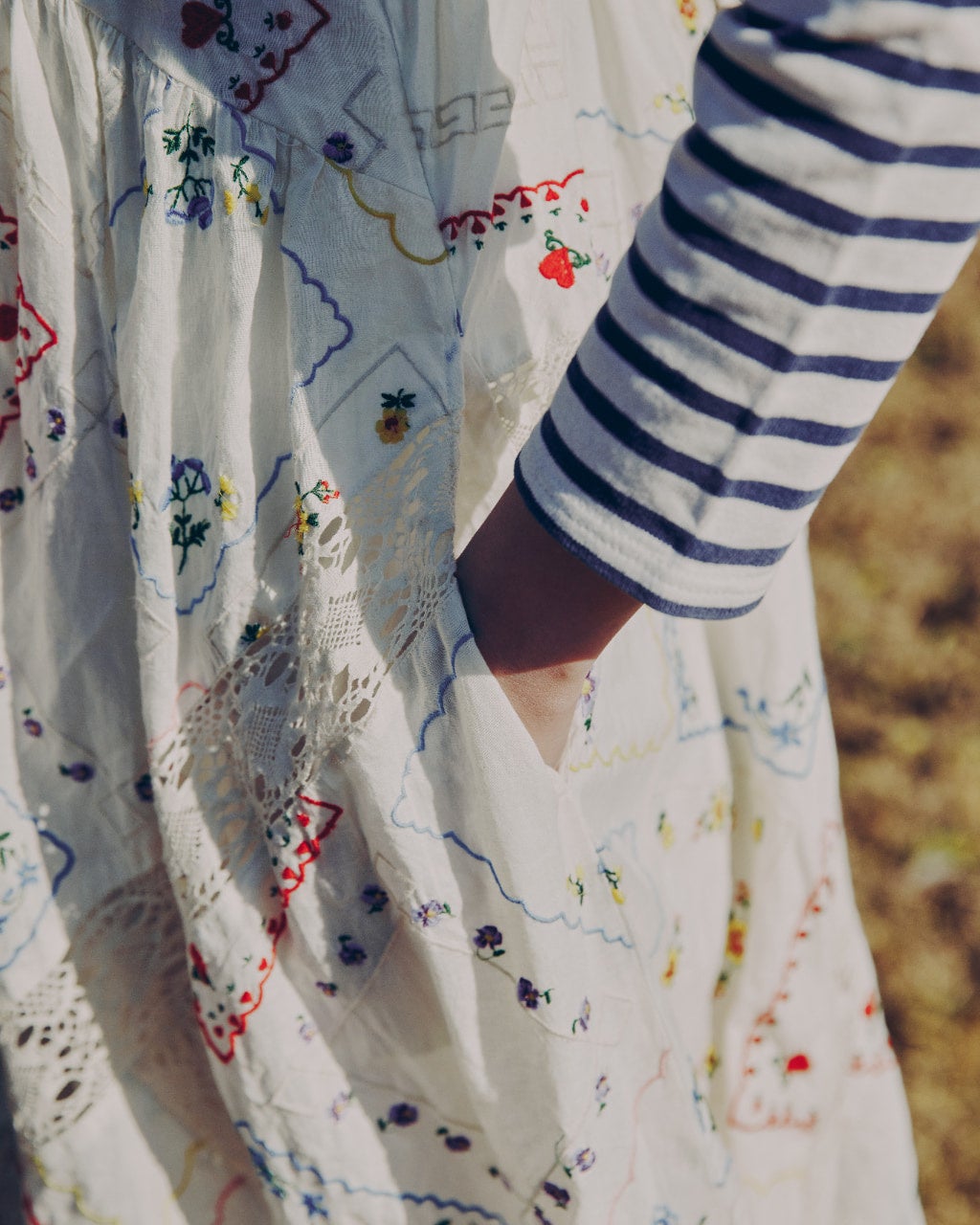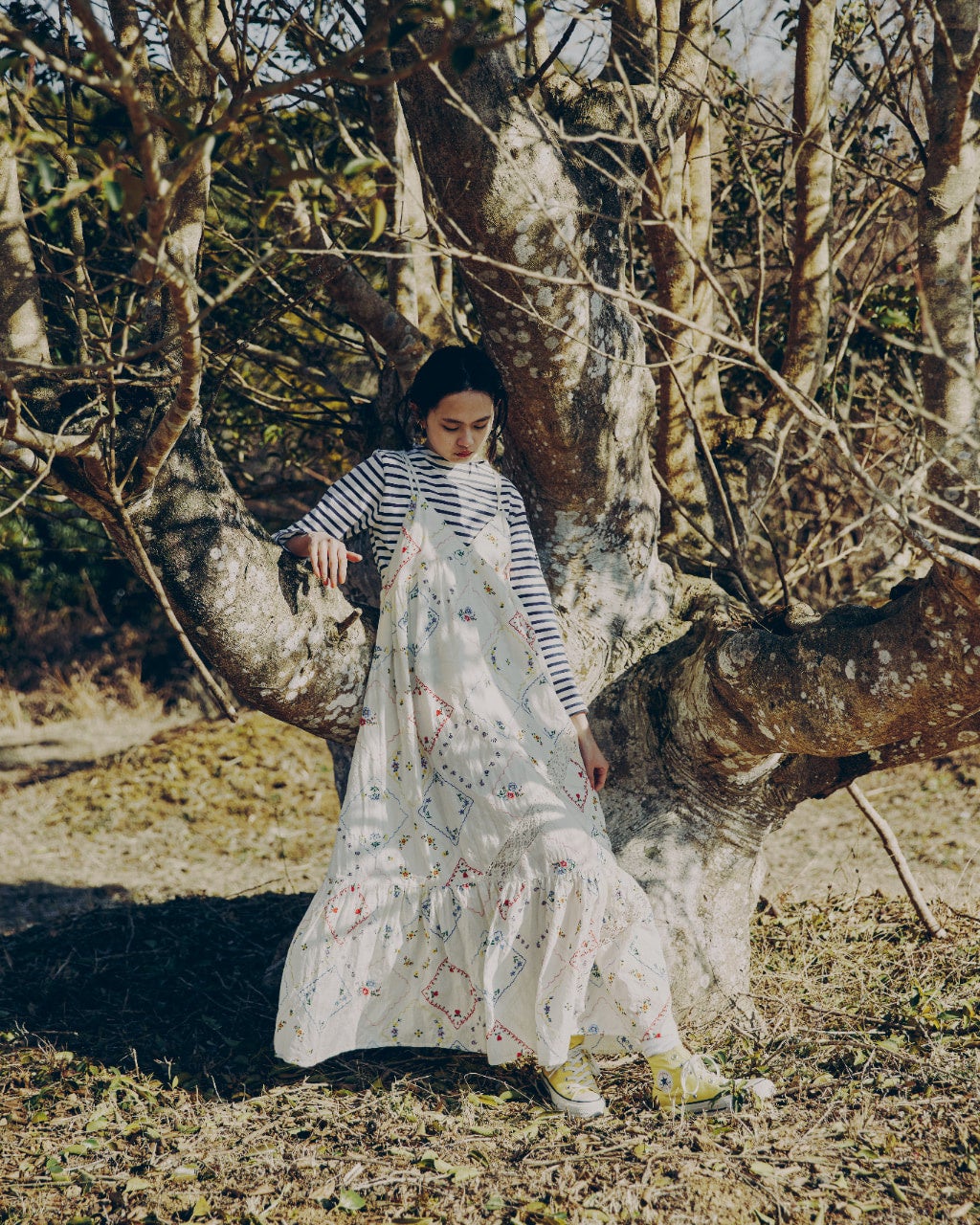 アンティークの刺繍ハンカチを繋ぎ合わせたようなキャミドレス。