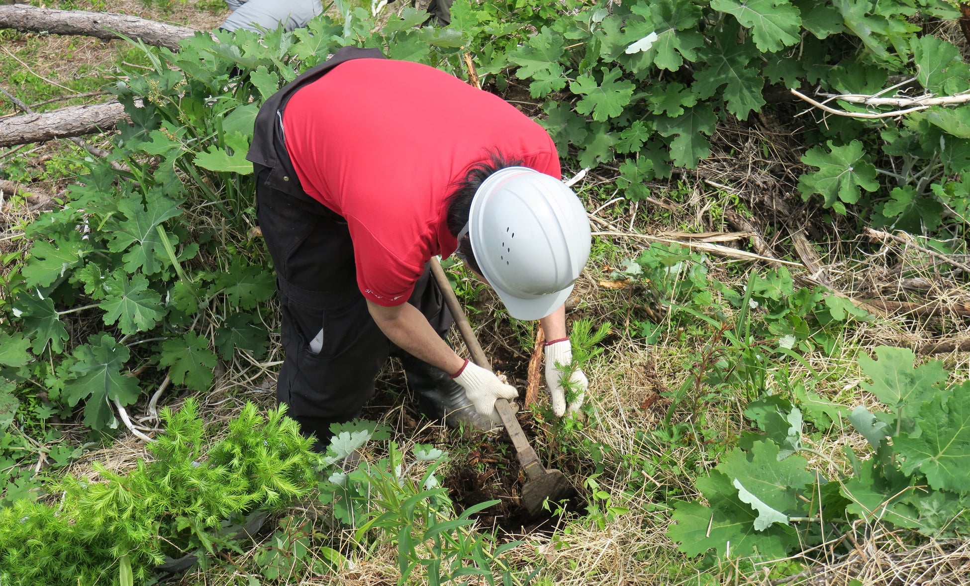 また、調印式に先立ち、5月27日に長野県小県郡長和町で行われた「植樹のつどい」には、上田工場や長野営業所の従業員や家族ら20名が参加し、他の参加者の皆様とともに2300本のカラマツを植樹しました。