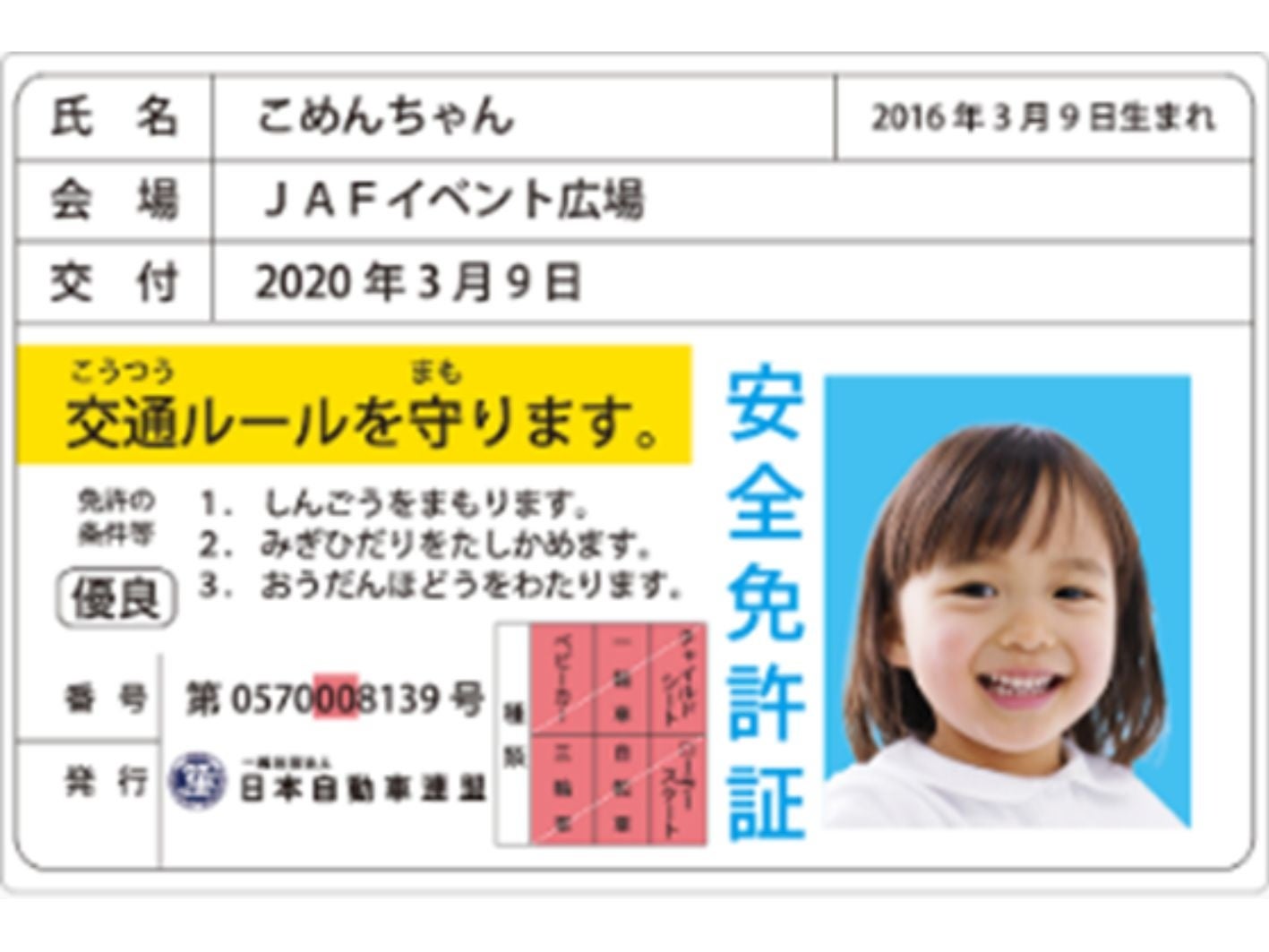 メインイベントのひとつとして、JAF(一般社団法人 日本自動車連盟)岐阜支部の協力により、シートベルト効果体験車・子ども安全免許証の発行・缶バッチ製作体験を実施します。