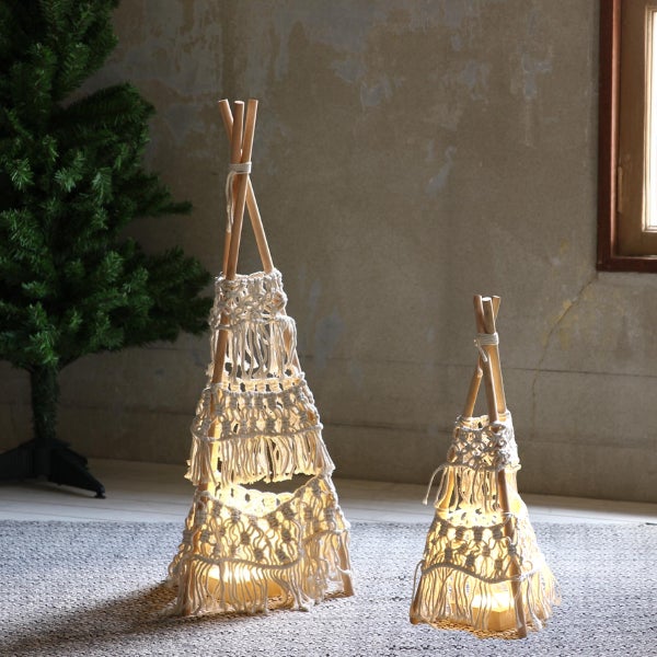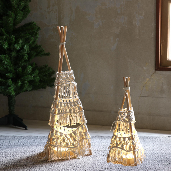 マクラメとは結んだり編みこむことで装飾・模様が生まれる編み方の技法です。アラビアのラクダの背につける麻袋の結び方が発展し、歴史とともに編み方の種類も増え、16~17 世紀にはファッションの装飾としてヨーロッパでマクラメが流行しました。古くから親しまれていたマクラメですが、おうち時間でインテリアに癒しを求める人が増え、ナチュラルな風合いで心温まるマクラメに今再び注目が高まっています。機械を使わず1 つ1 つ手作りで編んでいるから地球にやさしいエコなクラフト。また、伝統技術を後世に残す意味でも持続可能なライフスタイルにマッチします。「マクラメクリスマス」シリーズも全て手作りのため、ひとつひとつ表情が異なり味わい深いのも魅力です。ナチュラル、北欧、ボヘミアンなど様々なお部屋のインテリアとよく合い、いかにもクリスマスが苦手で、さりげなくクリスマス気分を味わいたい人におすすめです。今年のクリスマスはマクラメで暖かみのあるクリスマスを演出してはいかがですか。