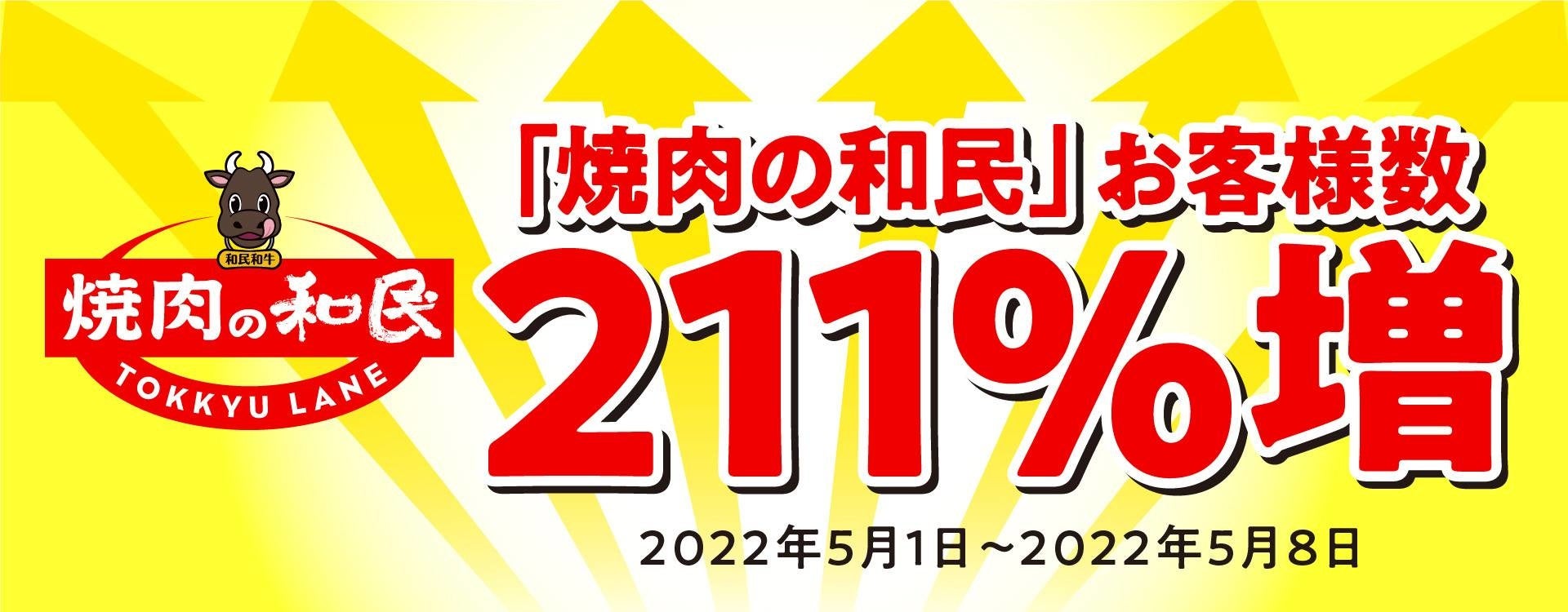 ワタミ株式会社(本社:東京都大田区、以下ワタミ)は全国で展開する、高品質な焼肉をリーズナブルな価格で提供する「焼肉の和民」は、2022年5月1日~5月8日のゴールデンウィーク期間中に客数前年比212%を達成しました。