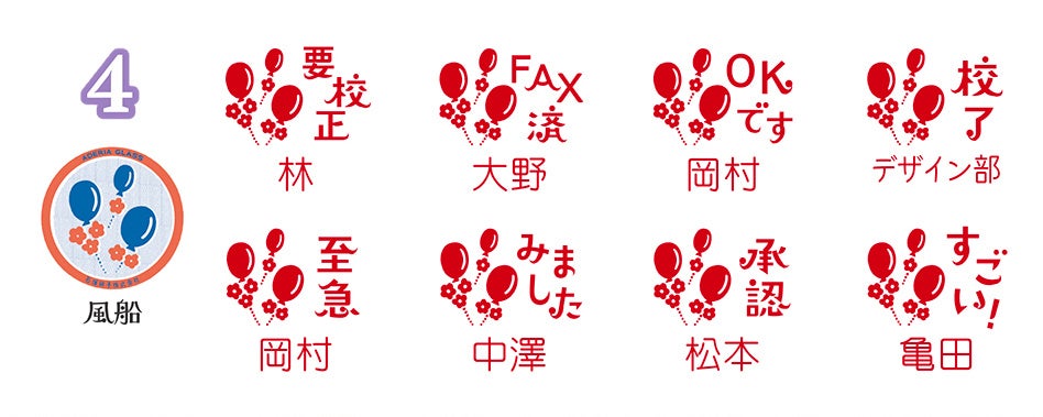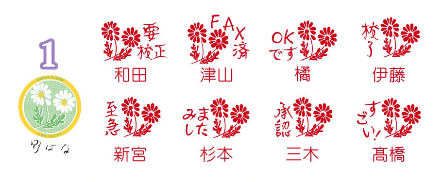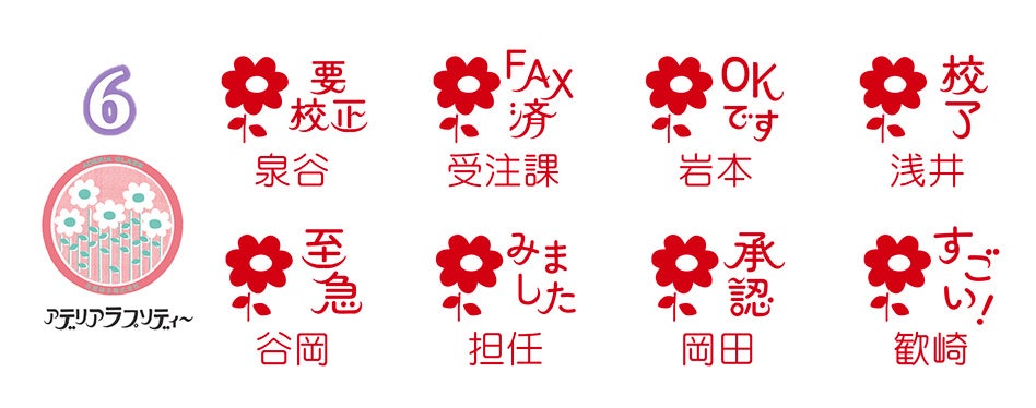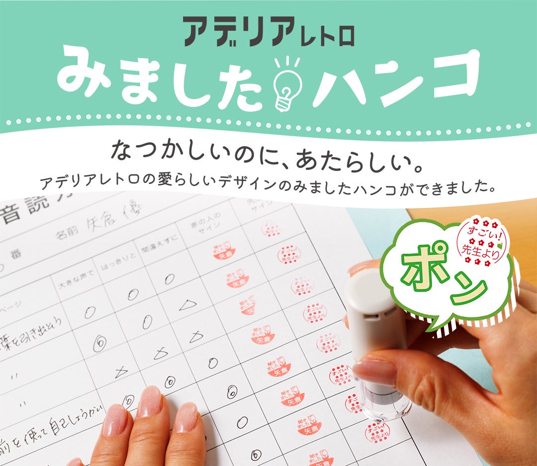 「先生とのやり取りで使えるかわいいハンコがほしい!」という声から企画。昭和レトロの代名詞・アデリアレトロのデザインを使った“みましたハンコ”が登場。学校の先生はもちろん、社内でのやり取りにも。