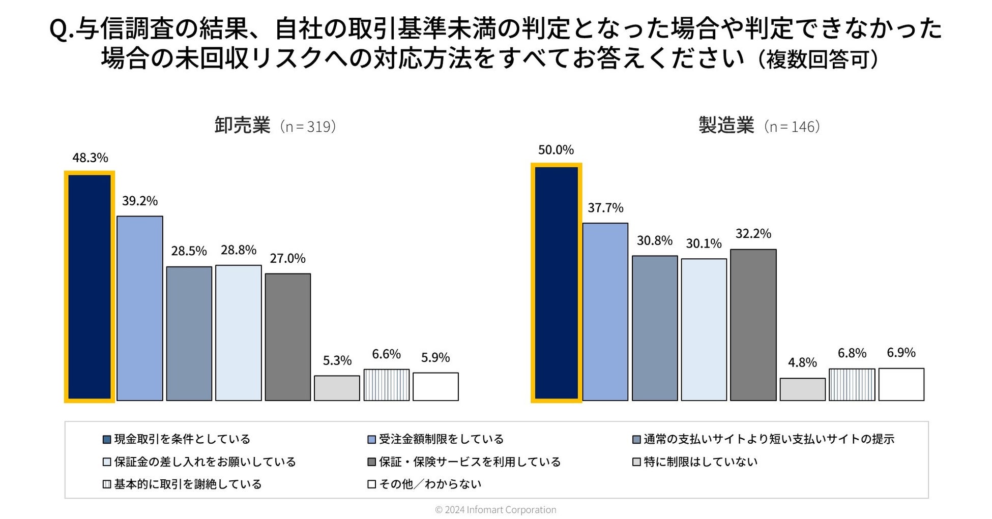 ・未回収リスクへの対応方法、約半数が「現金取引」を条件にしていると回答