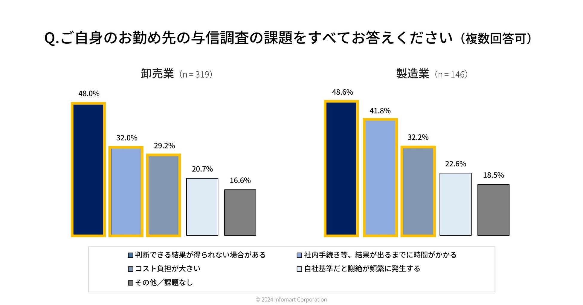 ・新規取引先の与信調査、8割以上が課題を抱えており「判断出来る結果が得られない」が最多