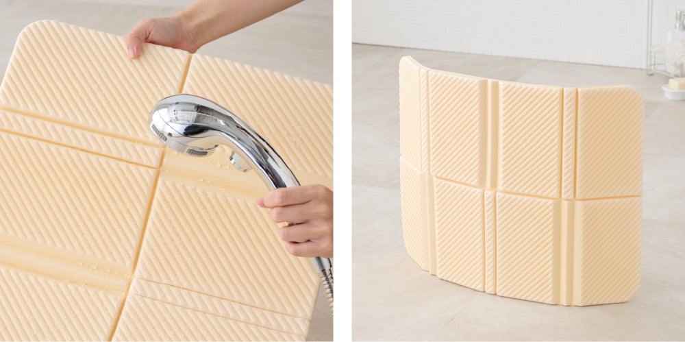 ママ・パパが体を洗っている間の待機場所や、おふろ上がりの赤ちゃんのお着替え場所としても活躍。ふれた時にひんやりしにくいのもうれしい。
