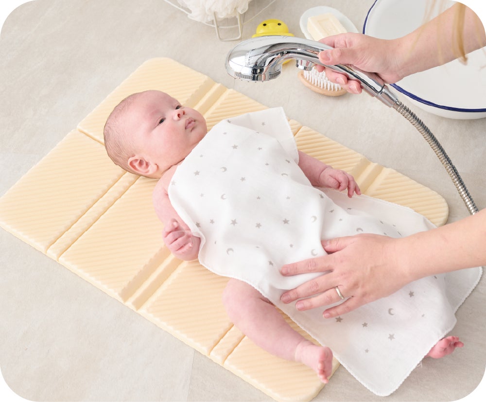 マットを敷くことで赤ちゃんを寝かせて使うことができ、シャワーで赤ちゃんを洗うことができます。