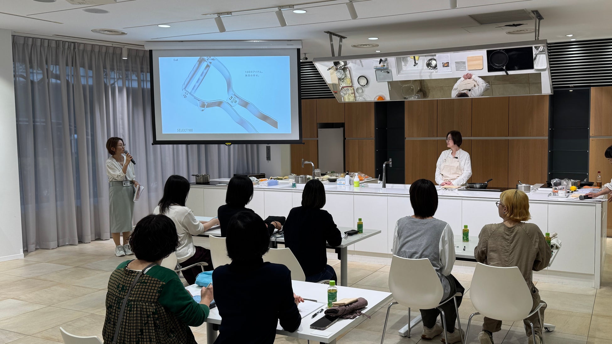 有賀さんによる「SELECT100」のキッチン用品を使ったデモンストレーション