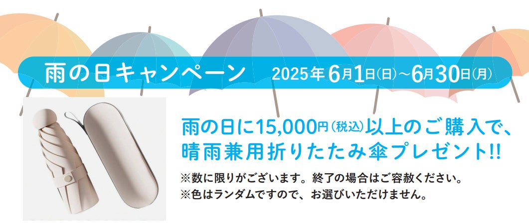雨の日に15,000円(税込)以上ご購入で、晴雨兼用折りたたみ傘プレゼント