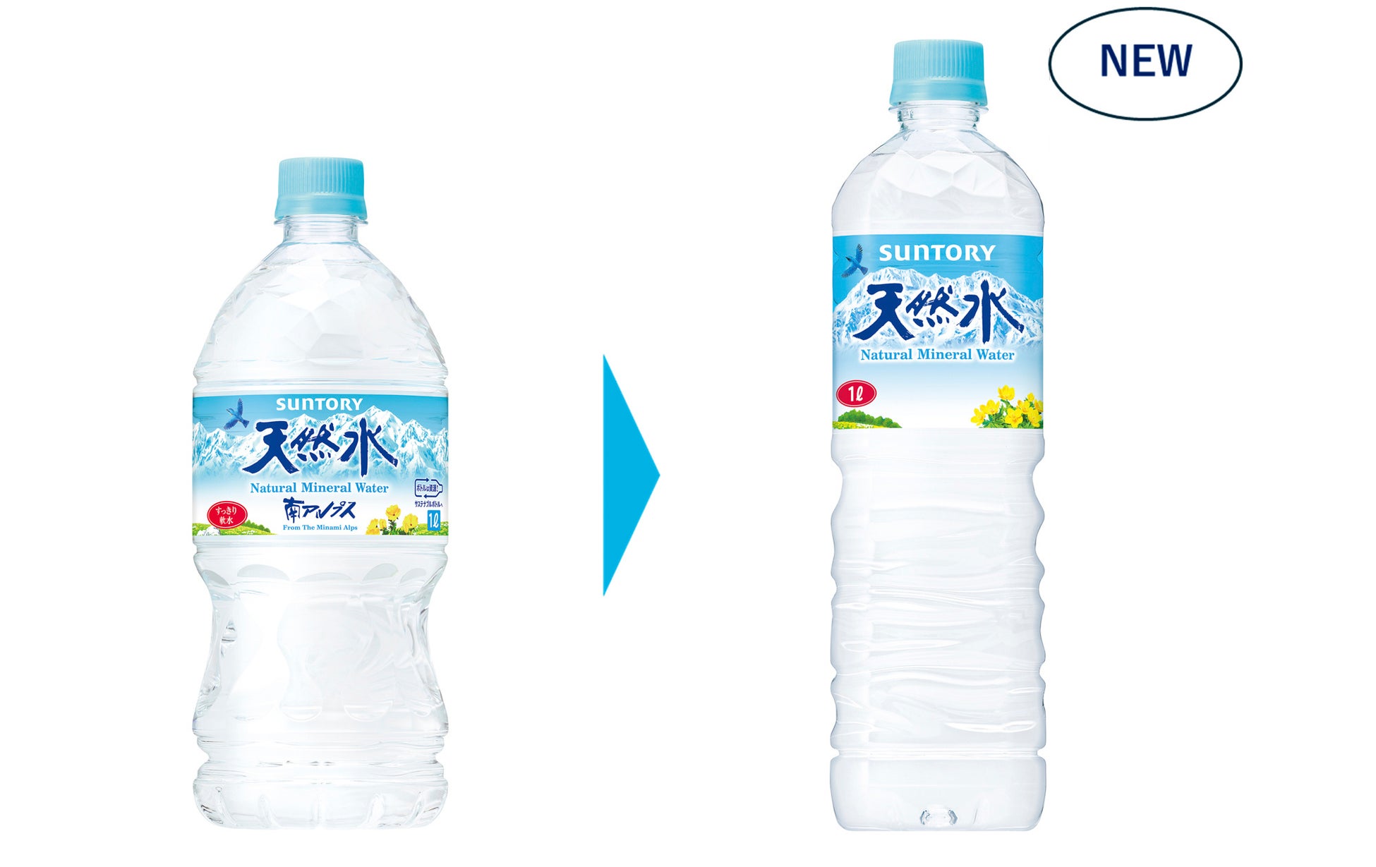 「サントリー天然水」1Lペットボトルの容器形状を刷新