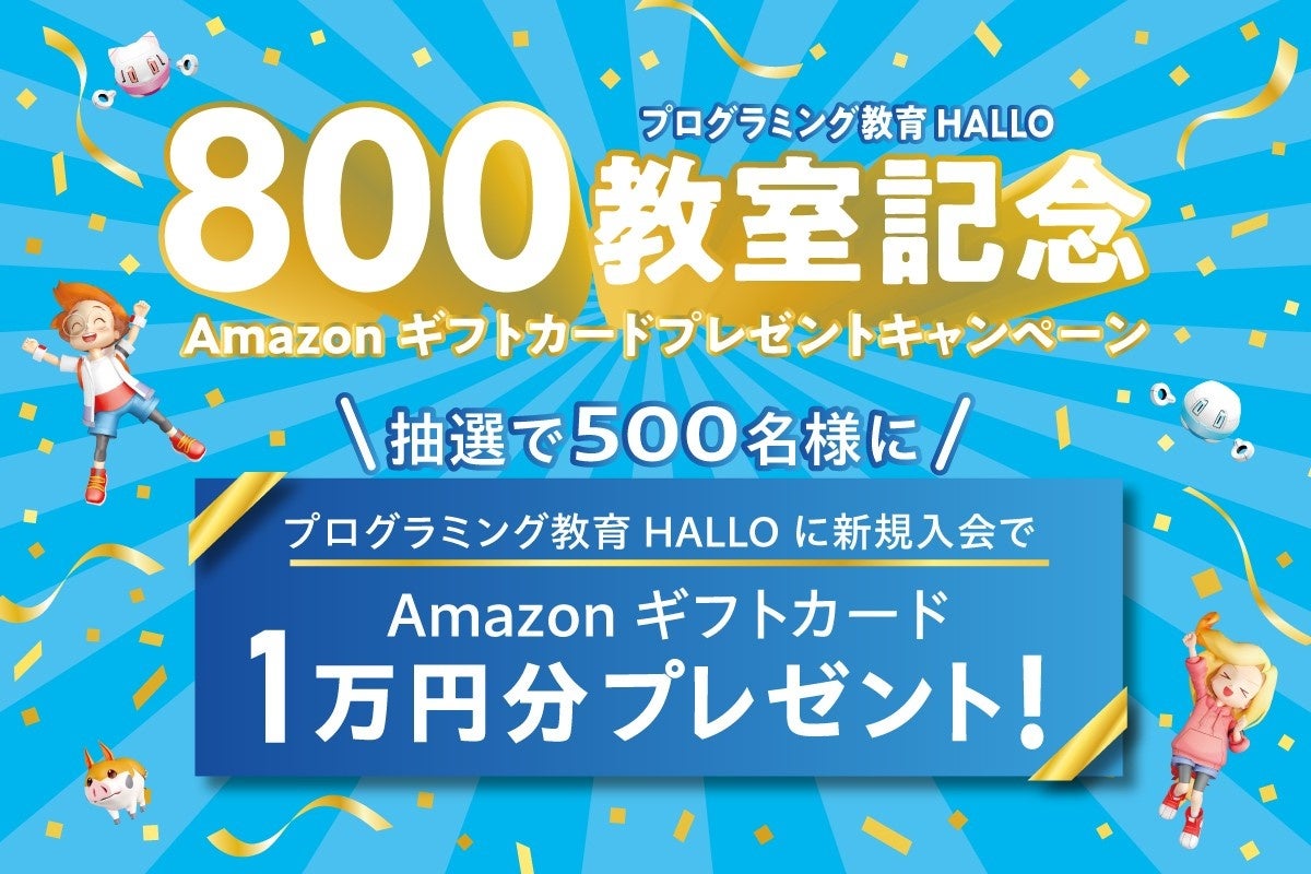 総合教育サービス事業の株式会社やる気スイッチグループ(東京・中央区、以下 やる気スイッチグループ)が人工知能(AI)技術の開発スタートアップの株式会社 Preferred Networks(東京・千代田区、以下PFN)とともに展開する「プログラミング教育 HALLO®」(以下、HALLO)では、800教室達成を記念し、HALLOへの新規入会でAmazonギフトカードが当たるキャンペーンを実施しています。