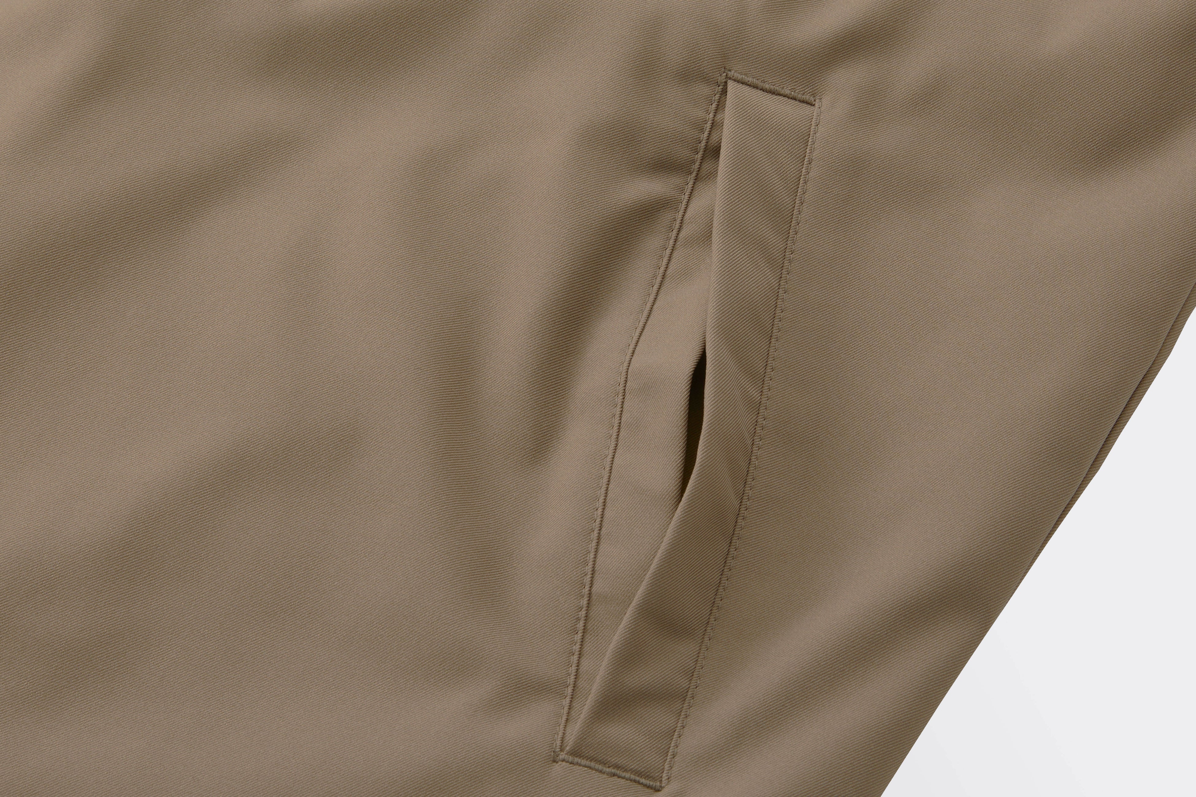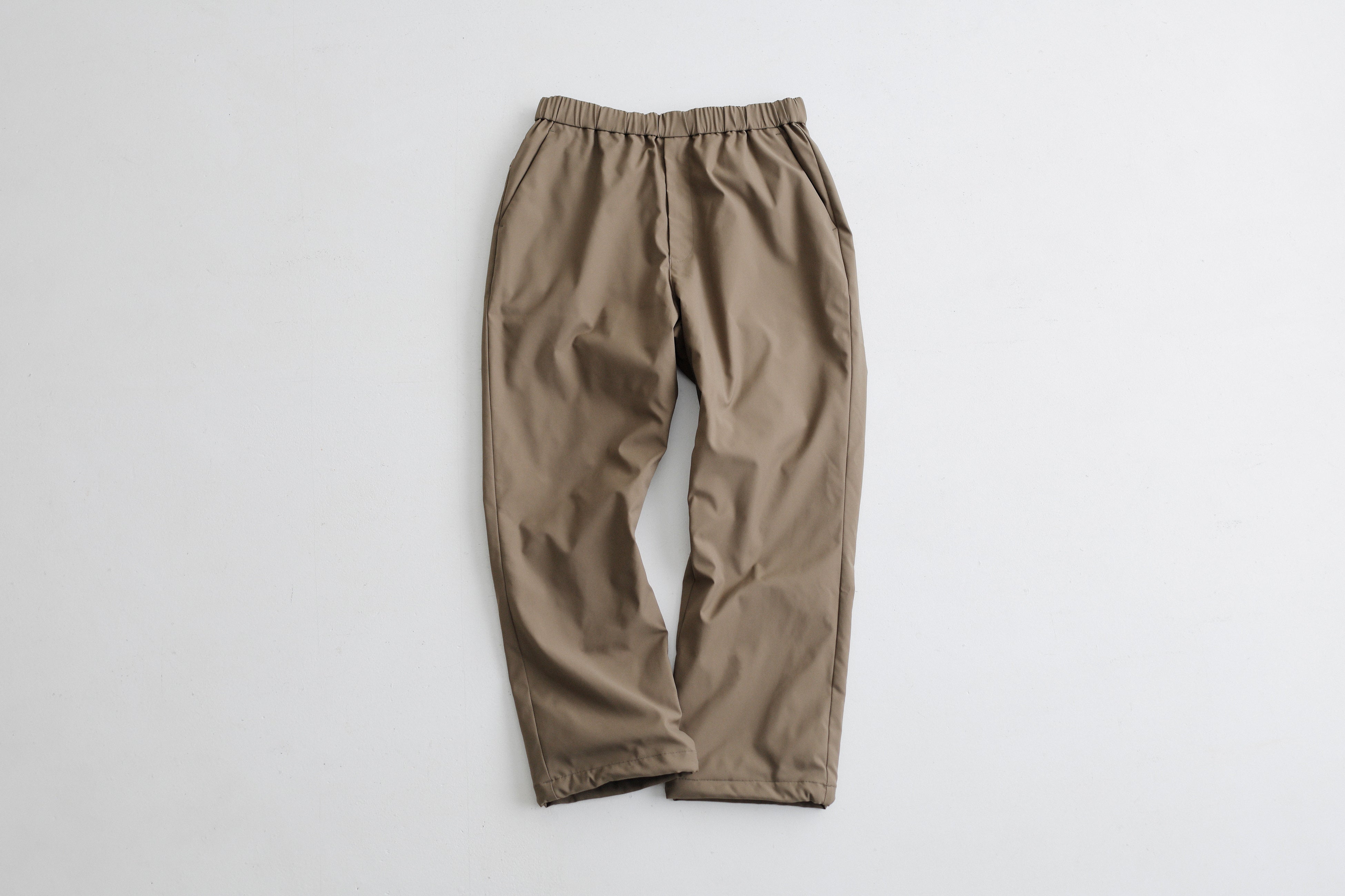 「テックツイルオクタパンツ」は、ウエストが総ゴムかつ調整ひも付きで、どなたでもフィットしやすいパンツです。裾のドローコードでシルエットの変化を楽しんだり、防寒対策としてもご着用いただけます。あると便利な後ろポケットには、デザインのポイントにもなるファスナーを搭載しました。