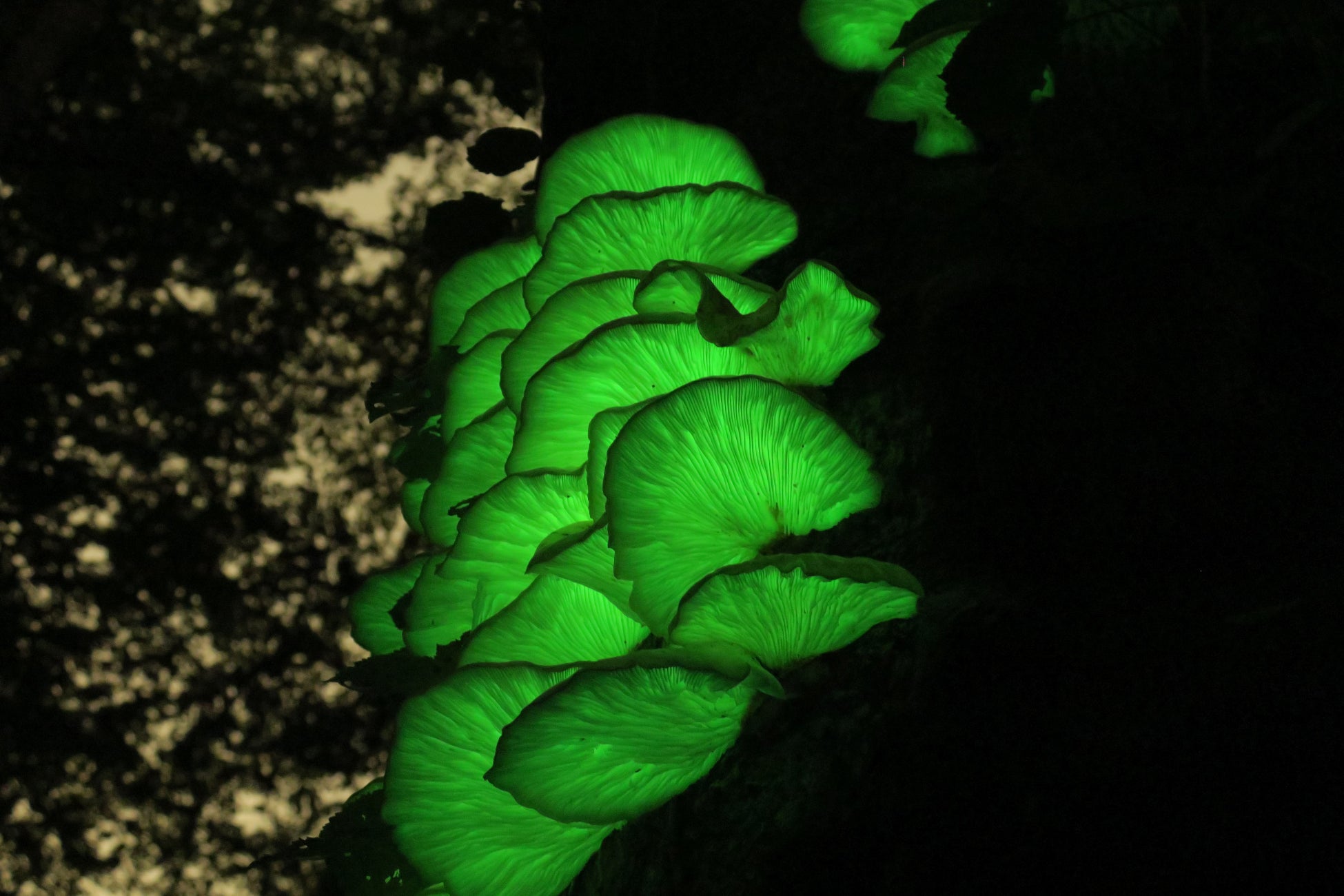 <闇に浮かび上がる毒きのこを探す「夜の毒きのこさんぽ」>