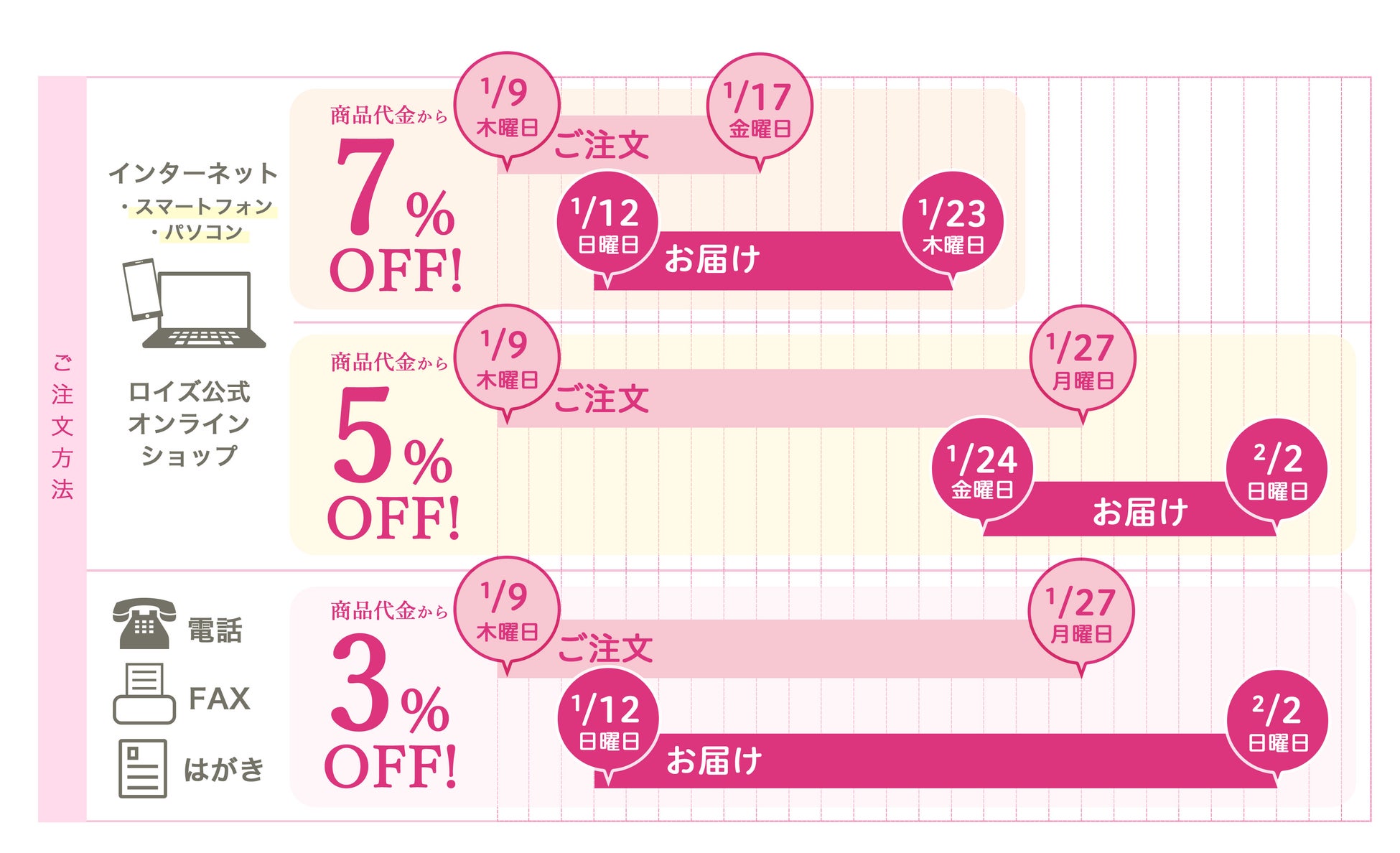 【ロイズ通信販売限定】お得に買えるチャンス!最大7%OFF!早期割引キャンペーンを1月9日より開始。