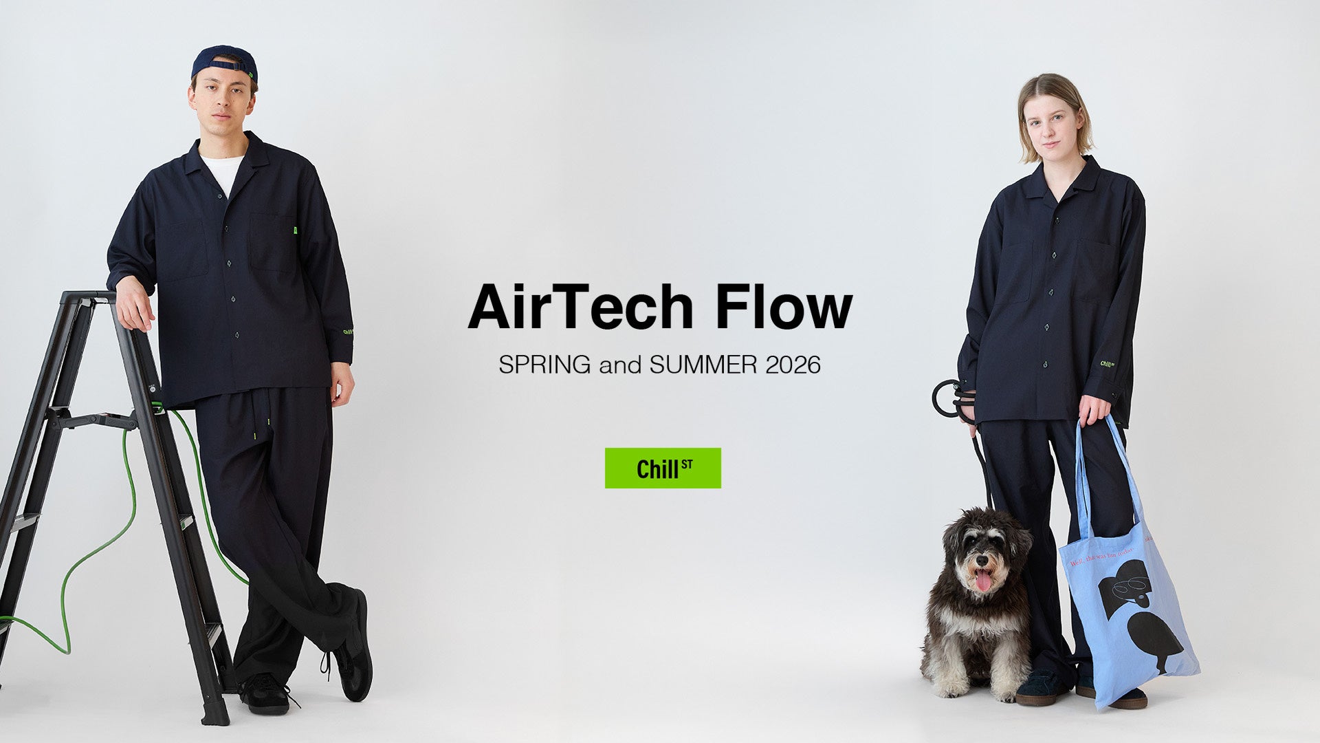 Chill STは、「街に出かけられるパジャマ」をコンセプトに、家と外の境界をなくす服として、多忙な現代人のライフスタイルをスマートかつリラクシーにアップデートするストリートパジャマブランドです。この度、通気孔を備えた多機能ポリエステル素材“AirTech Flow”を採用したシリーズを発売いたします。こもりがちな熱や湿気を逃がす通気設計により、暑い季節でも涼しく快適な着心地を実現します。