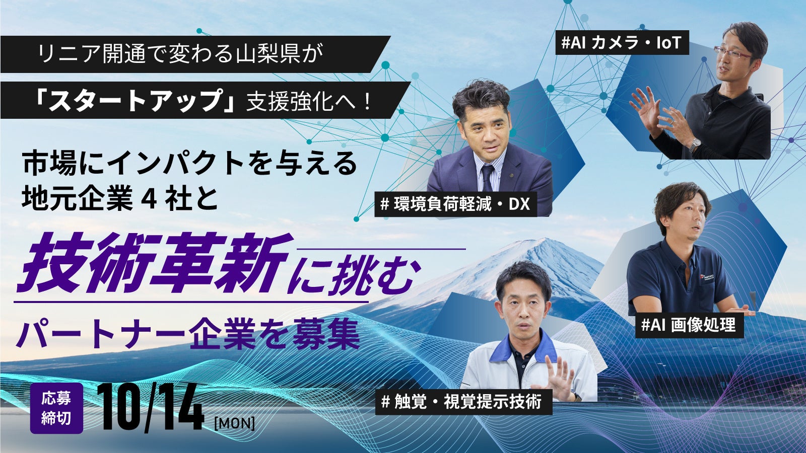 【 山梨県 × eiicon 】 県内企業4社が全国スタートアップからの共創アイデア募集を開始! 『STARTUP YAMANASHI OPEN INNOVATION PROGRAM 2024』