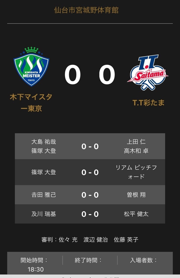 ノジマTリーグ 2022-2023シーズン 公式戦 11月19日開催 木下マイスター東京 vs TTたま オーダー発表