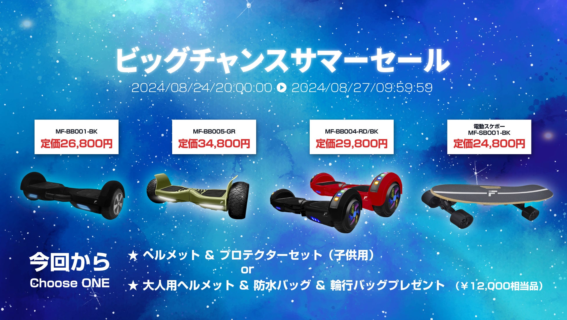 楽天市場「Show!t」は、7月4日(木)20:00~7月11日(水)01:59の期間中、電動バランスボードの購入で12,000円相当のキッズプロテクターまたはヘルメットと収納バッグ、さらにアウトドアやレジャーに便利な防水バッグをプレゼントする、お得なMEISTER.F電動バランスボードセットを販売します。バランスボードは、重心移動で運転をコントロールできるため、バランス感覚を養うのに最適です。体重移動で自由に動き、スムーズな走行を楽しめるこの乗り物を、ぜひご家族でお楽しみください。