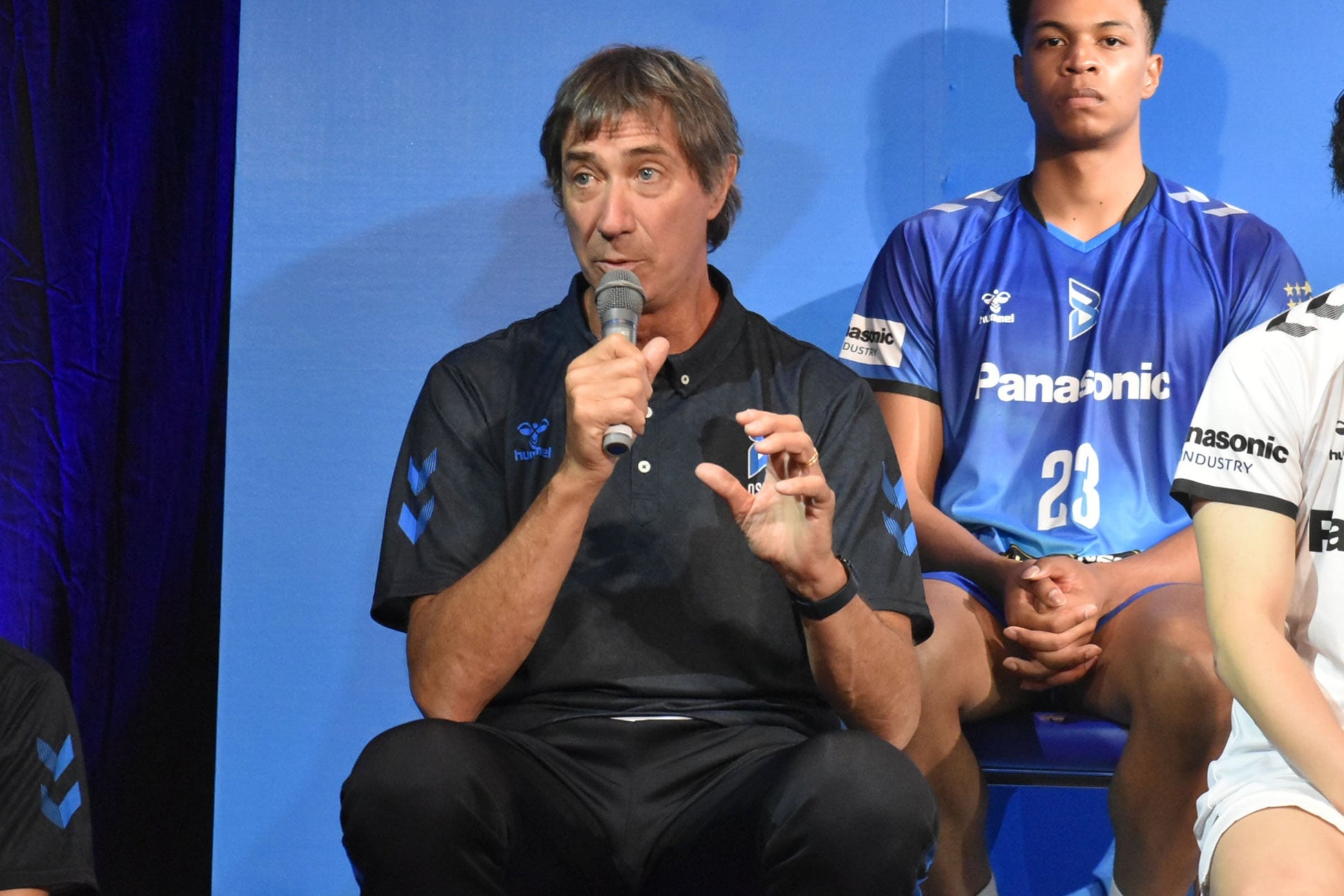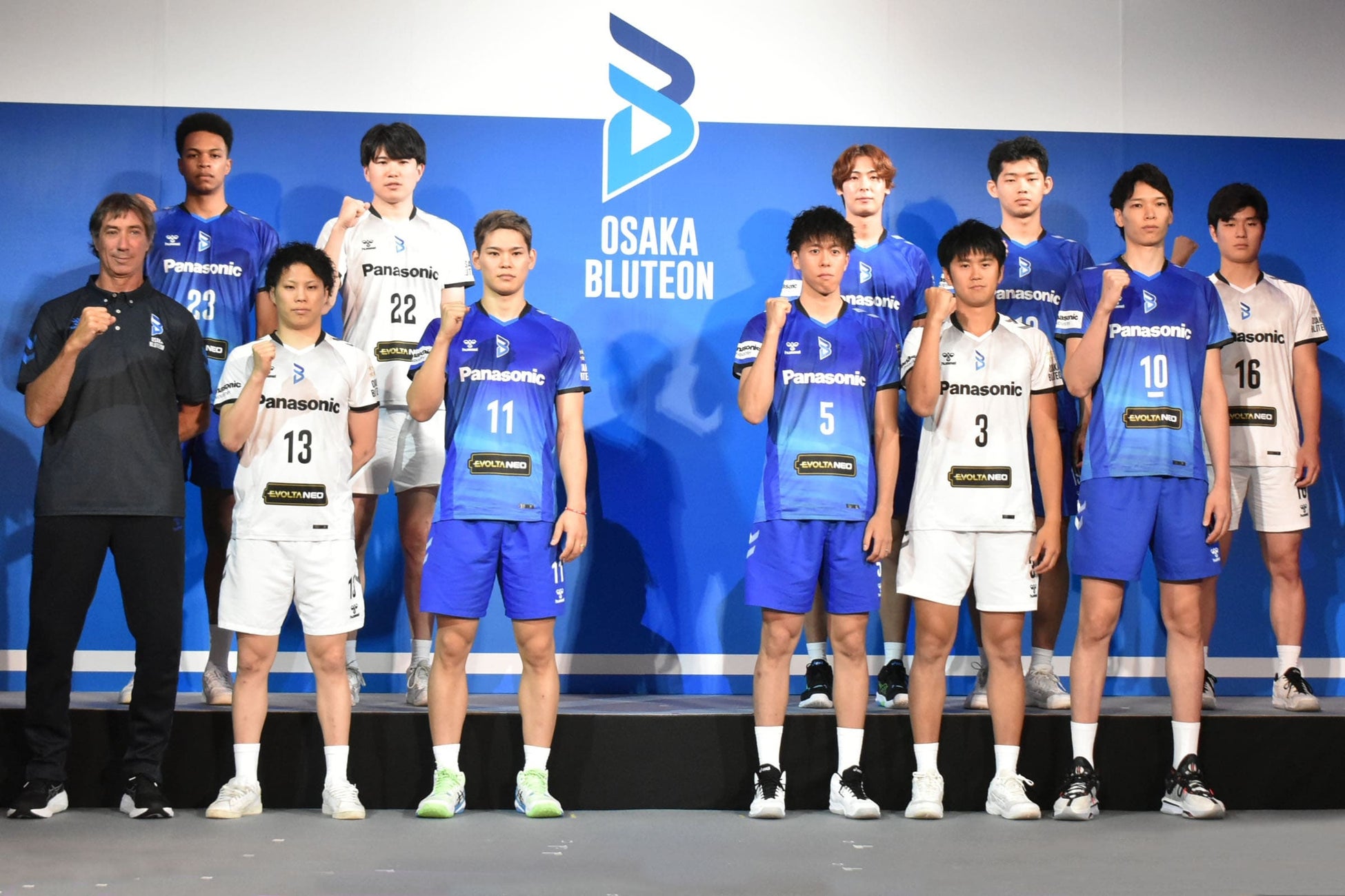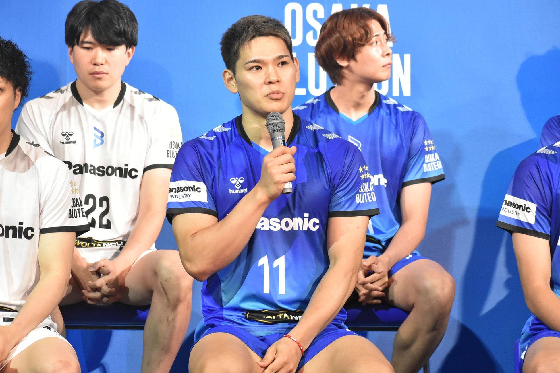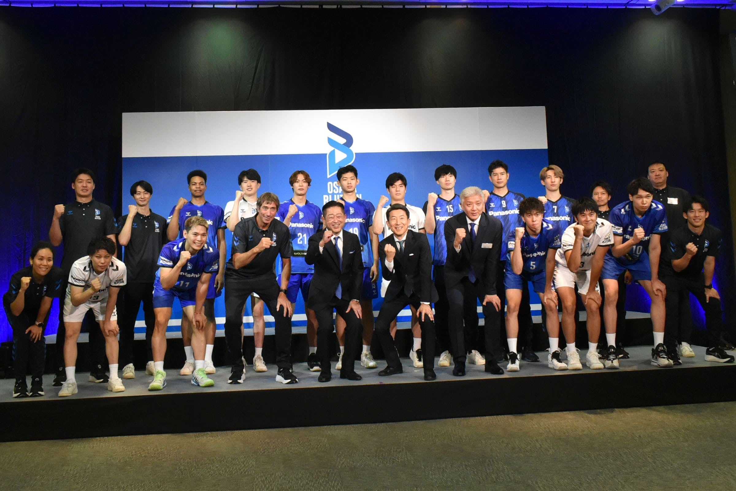 6月11日に大阪市内で行われた発表会で、初めてユニフォームを着用した西田有志選手は、「今年、ヒュンメルさんがついていただいて、シンプルな中にチームのコンセプトを出してもらえた」と話すと、キャプテンの山内晶大選手は、「今までなかった青が新鮮」とコメント。ティリ・ロラン監督は、「長い歴史を変えるのは難しいが、変えていかないと向上できない。名前やエンブレム、ユニフォームなども変わり、新しい風が吹くシーズンになる。ここでトップを目指します」と新シーズンに向けた意気込みを語りました。