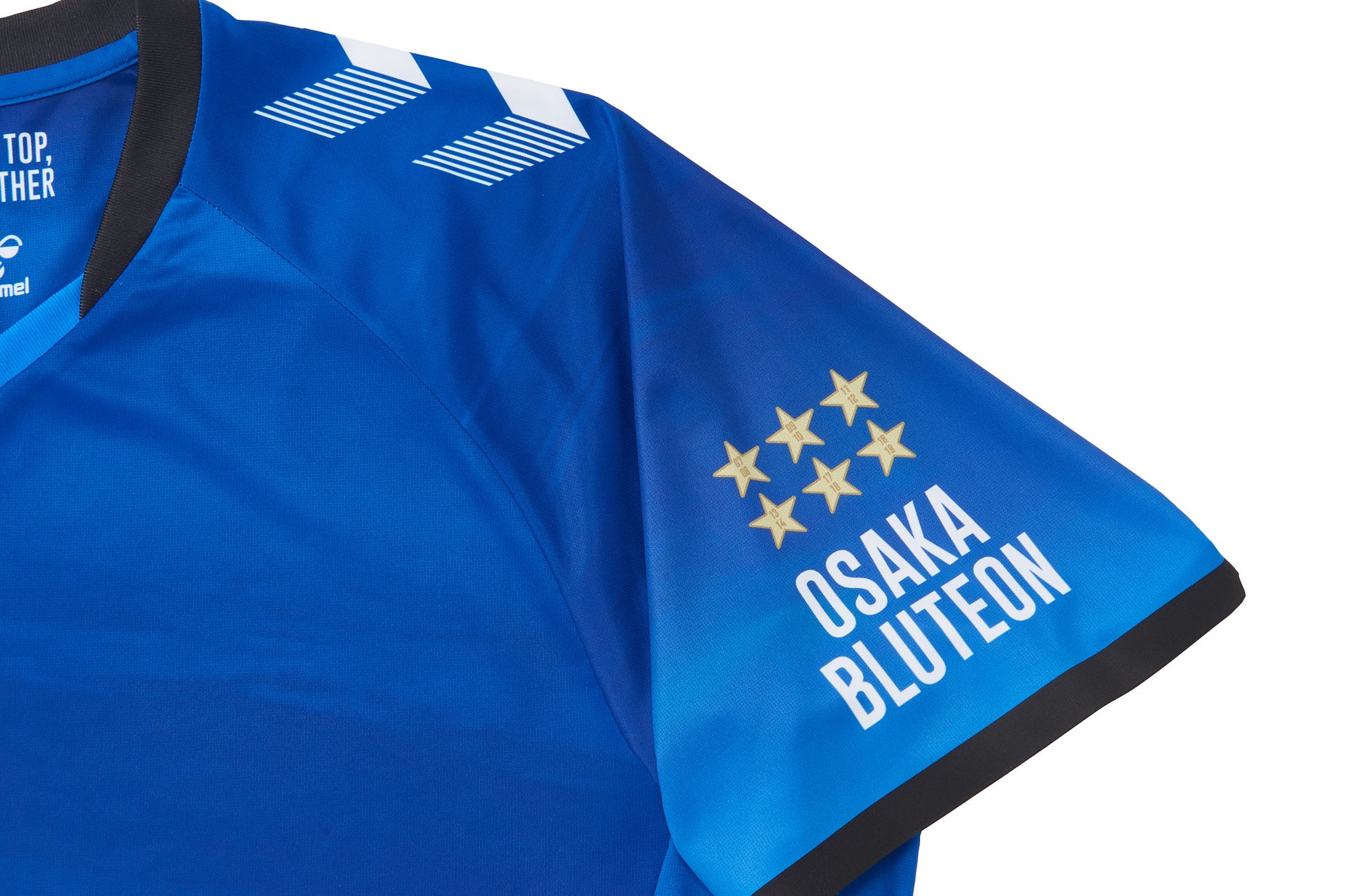 衿裏には大阪ブルテオンのミッション「Always to the top, All ways together(常に頂点へ、前途を共に)を配置。ゲームに向かう選手たちを鼓舞し、同じユニフォームをまとい声援を送るサポーターとの一体感を強めます。
