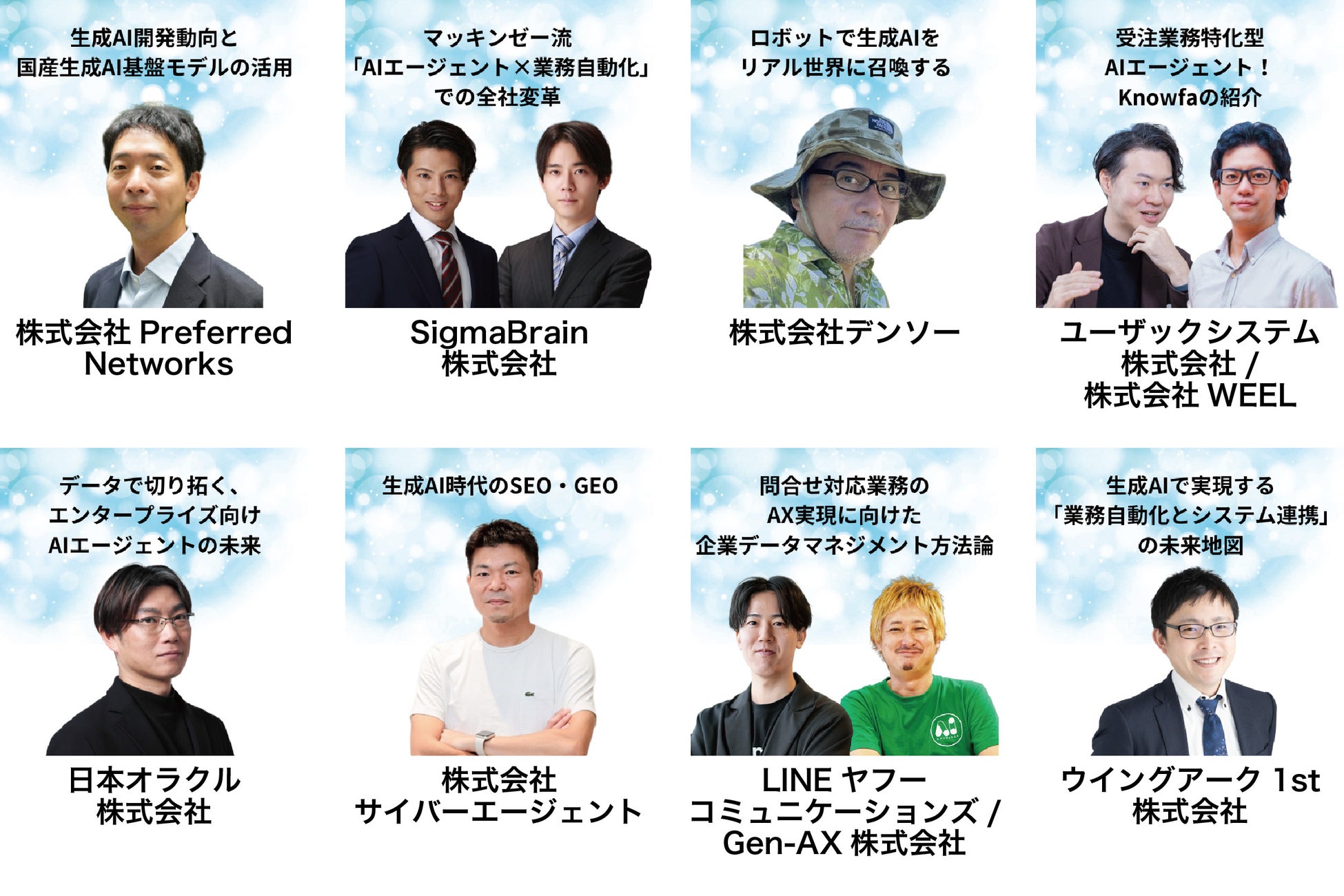 次世代AIの主役であるAIエージェントを一気に理解できるよう、業界リーダーや専門家による講演が実施されるほか、厳選された最先端企業や専門家が一堂に会し、展示、講演、デモンストレーションを通じて最前線の知見と具体的なソリューションを提供します。
