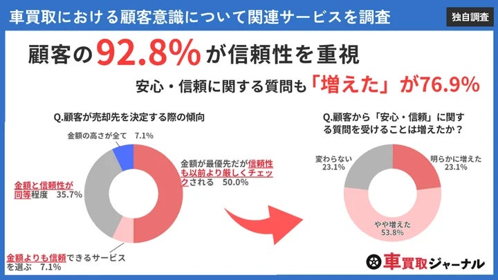 【大手中古車買取サービスに実態調査】76.9%の業者で顧客からの「安心・信頼」に関する質問が増加