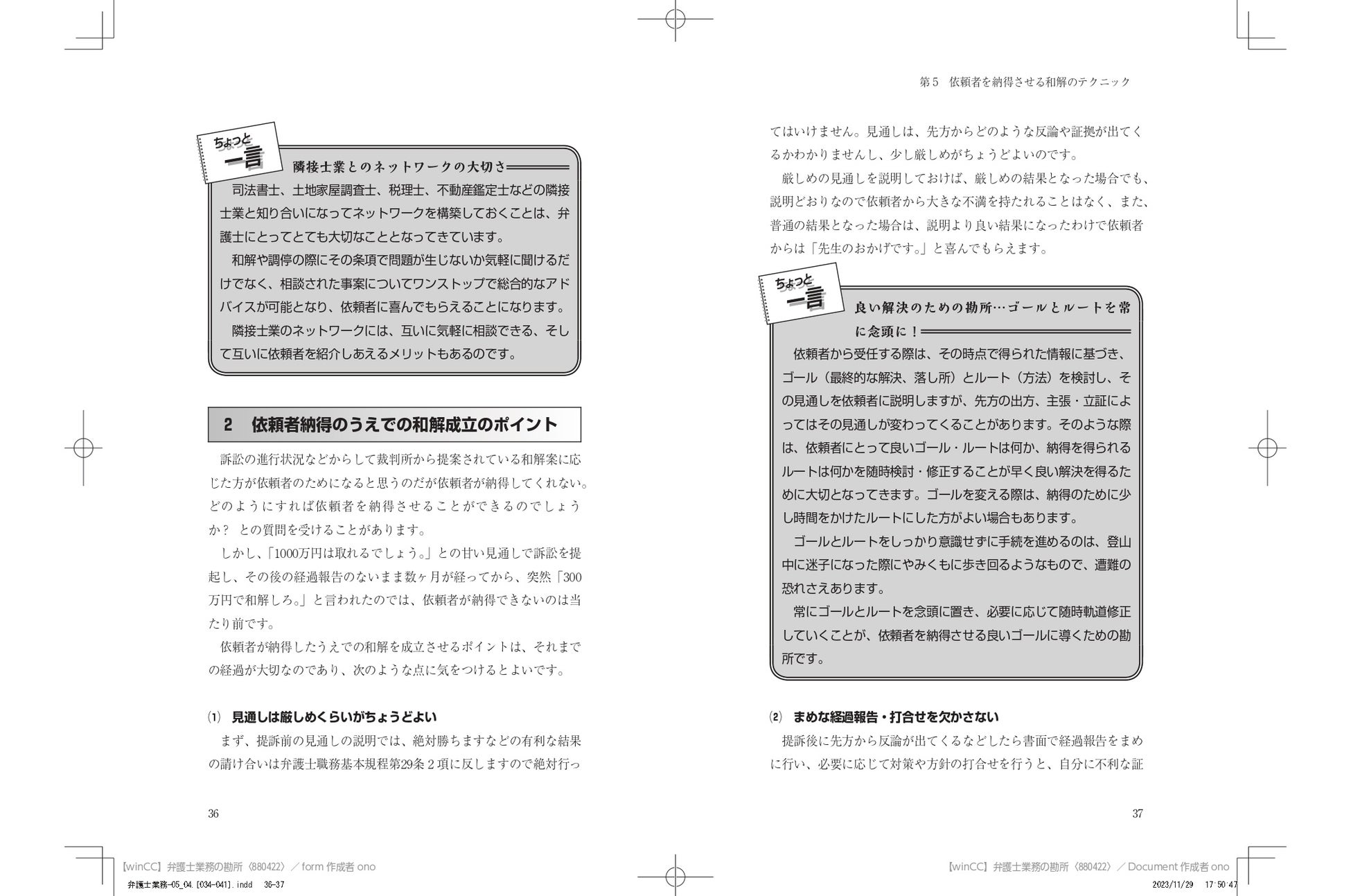 裁判所を味方にするための心がけや、事務所経営に伴うファンの増やし方等、弁護士業務の「勘所」が満載の1冊です。