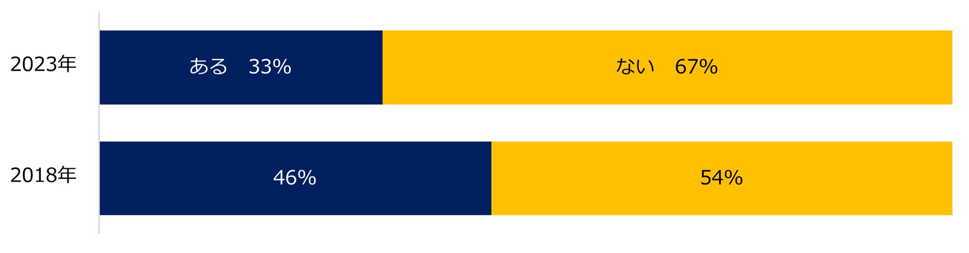 1:家族に転職を反対された経験がある方は33%。2018年から13ポイント減少。(図1、2)