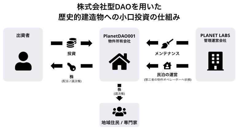 このような状況を背景に、国内地域住民や海外投資家らが協力し合うことで、文化的価値を尊重しつつ、経済的利益も追求できる持続可能なビジネスモデルを築くため、PlanetDAOの設立に至りました。