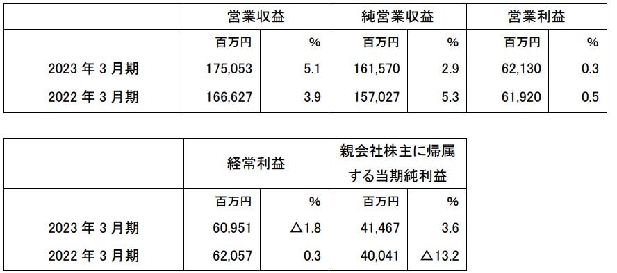 株式会社SBI証券(本社:東京都港区、代表取締役社長:髙村 正人)の2023年3月期連結業績(日本基準)は以下のとおりとなりましたのでお知らせします。