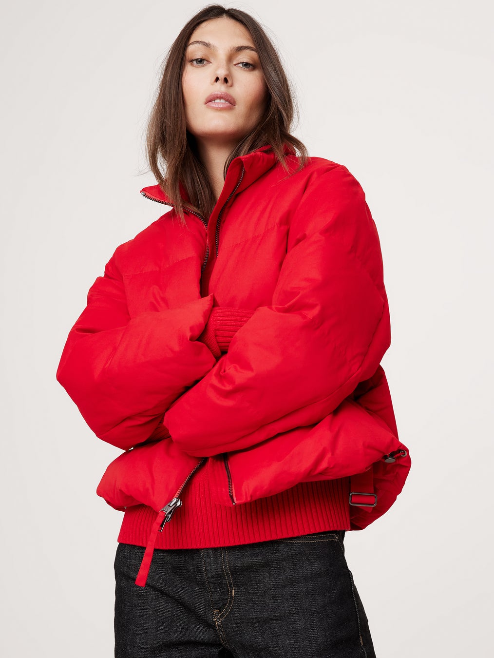 今季注目のウィメンズウールコートからは、大胆なヘリンボーン柄が目を引くオーバーサイズのカーコートや、毎シーズン人気のウール混ダブルフェイス素材を採用したダブルフェイス スカーフコートがトレンドのレッドやベーシックカラーのブラック、ベージュなど全5色で展開。取り外し可能なスカーフがついて、アレンジ次第で様々な着こなしが楽しめます。パファーアイテムからは、保温性に優れた700フィルパワーの、環境にも優しいリサイクルダウンを採用したジャケットとコートが登場。内側についたストラップは、着脱の際に肩に掛けたりできる汎用性の高さも魅力です。華やかなスタイルに仕上げてくれる、暖かなぬくもりとミニマルなデザインが魅力のシェルパジャケットにも注目です。