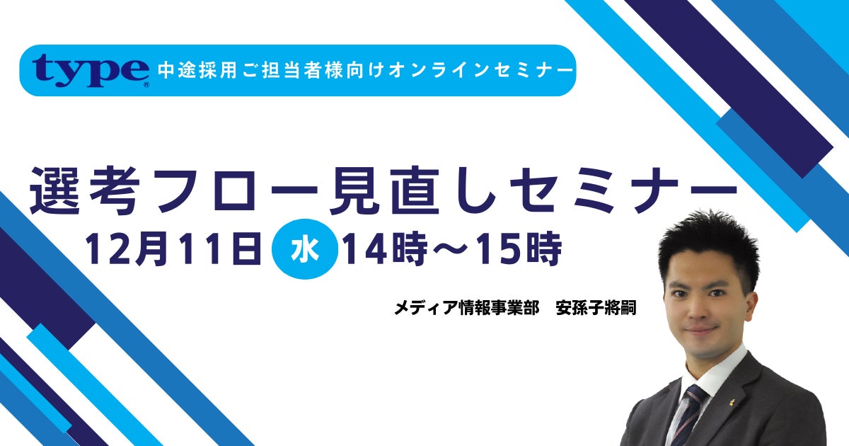 転職サイト「type」では、12/11(水)14時より、「【中途採用ご担当者様向けオンラインセミナー】選考フロー見直しセミナー」を開催いたします。