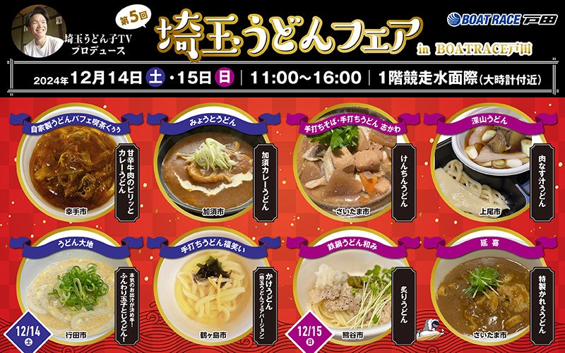埼玉県民のうどん愛に刮目せよ! 全品税込み500円! 12月14日(土)12月15日(日)の2日間、BOAT RACE戸田に埼玉県内の厳選うどん8店が集結!