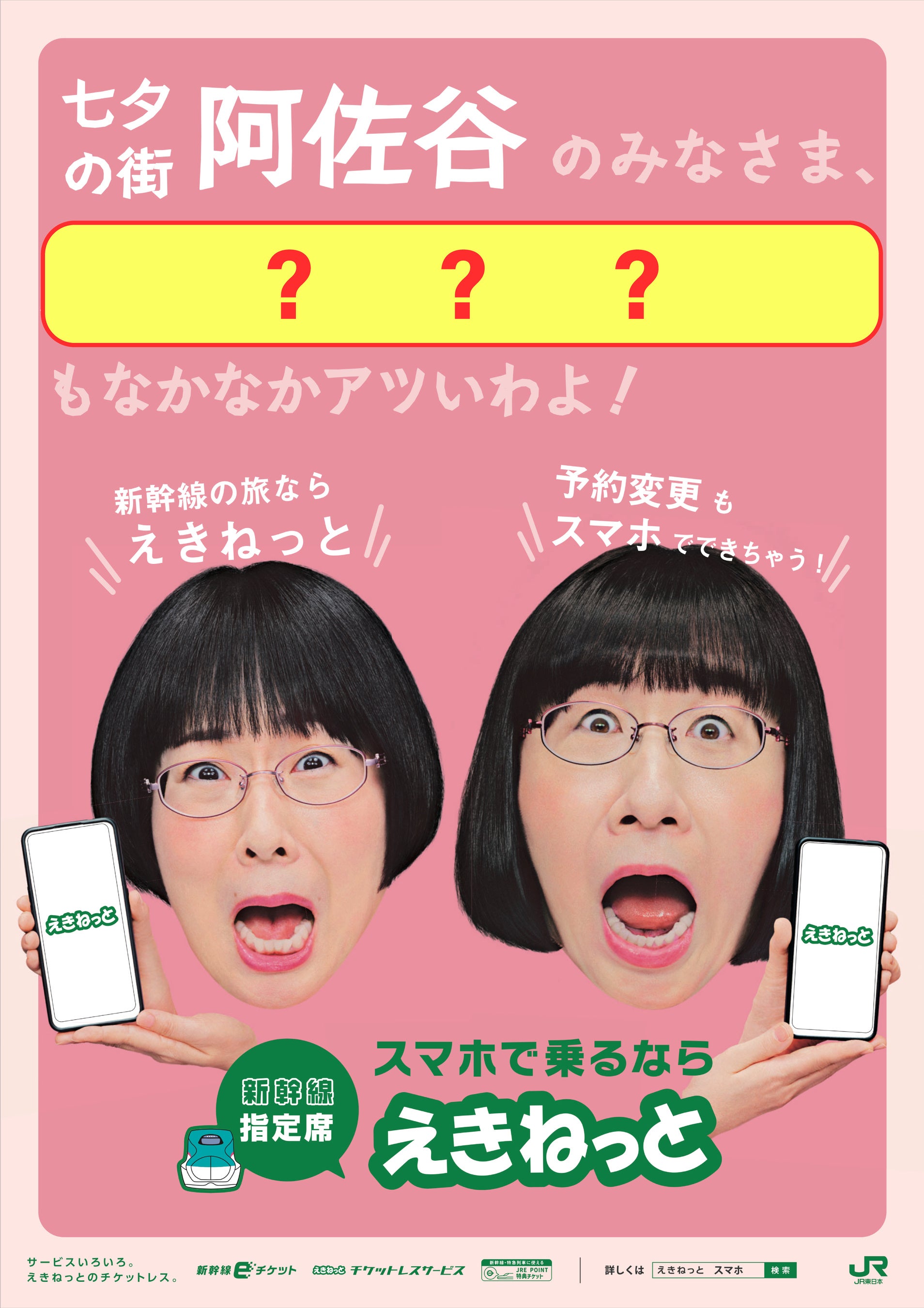 阿佐ヶ谷姉妹さんが阿佐ケ谷駅をジャック!?阿佐ヶ谷姉妹さんがJR東日本『チケットレス商品』の新広告に出演!「あら、まだ、なの?」「え、もう、なの?」というリズミカルなお二人の掛け合いにも注目!