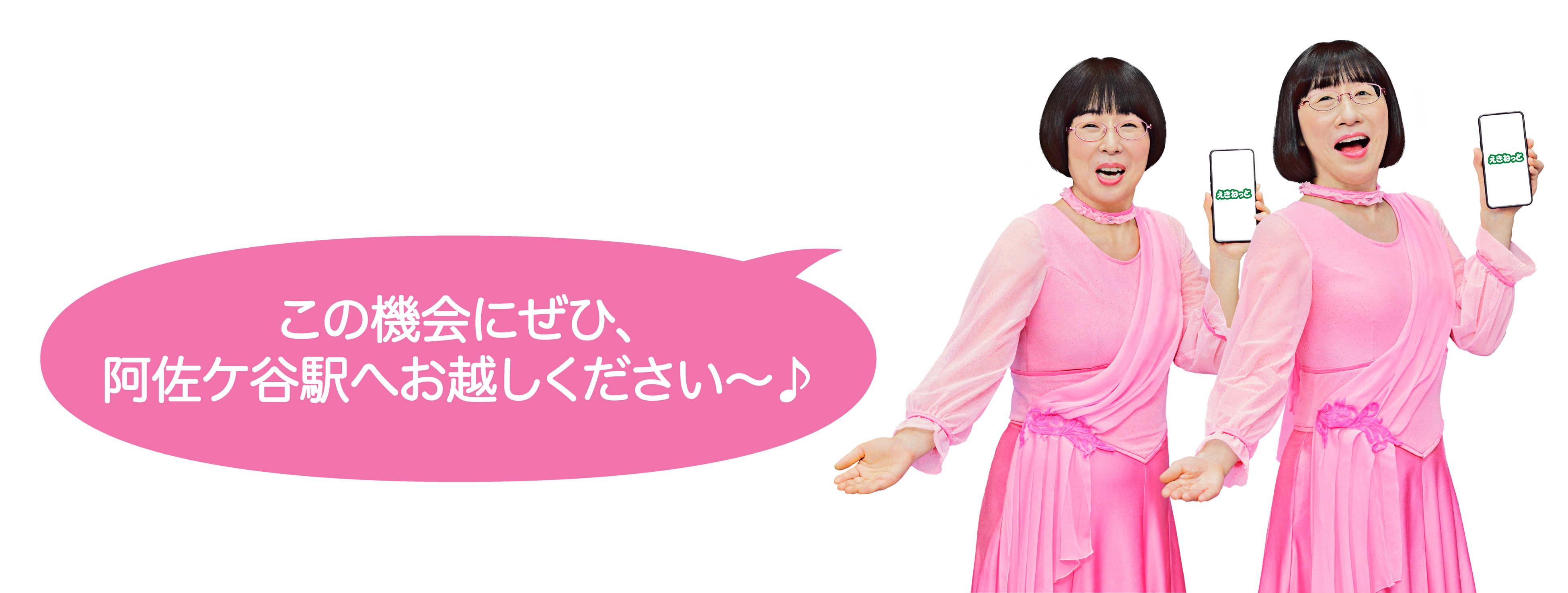 阿佐ヶ谷姉妹さんがチケットレス商品の新広告のメインキャラクターに起用されたことを記念して、お二人も慣れ親しんでいる阿佐ケ谷駅とスペシャルコラボ実施予定!