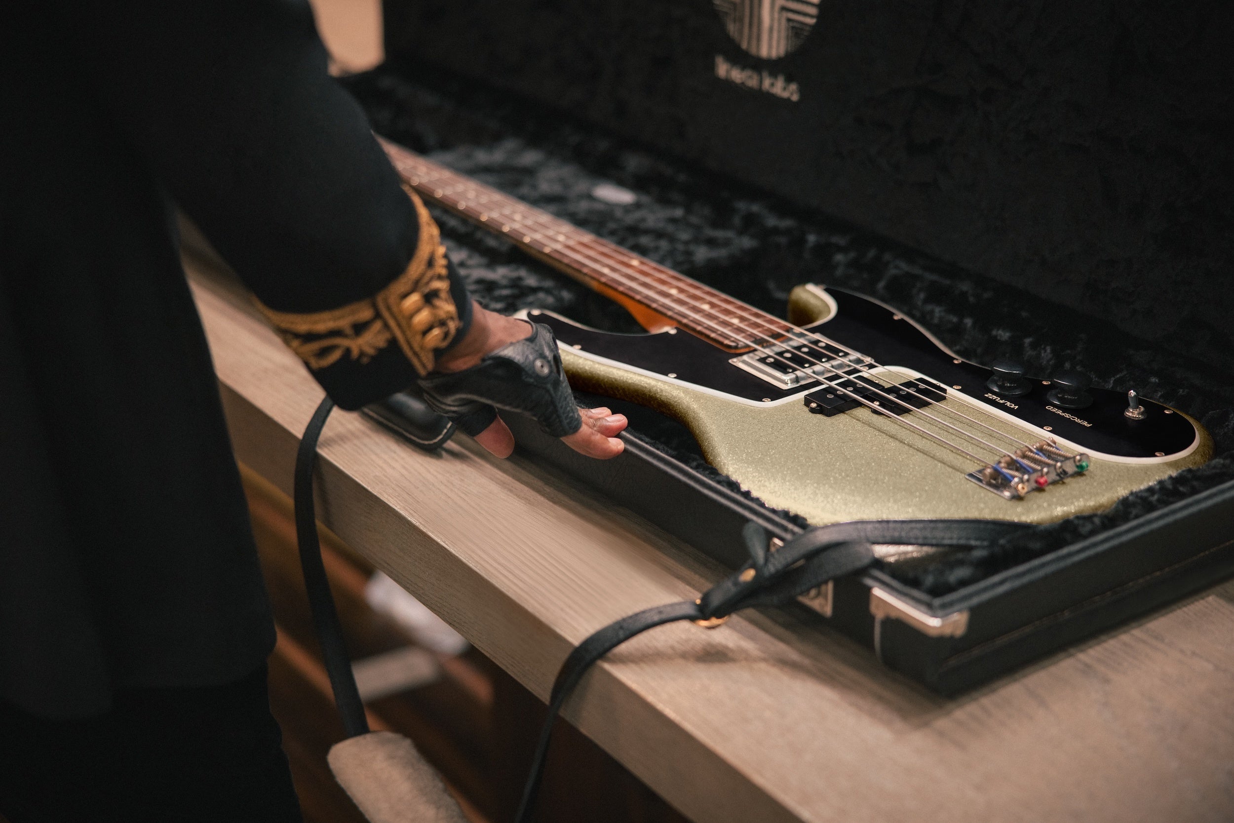 Fender Custom Shop 製品開発ディレクターのチェイス・ポールは、「アーティストの個性をカスタム楽器に落とし込むのは決して簡単なことではありません。しかし、エイドリアンが愛してやまないヴィンテージのアナログ録音機材や、彼独自のプレイスタイルは、このシグネチャーのジャズベースに余すところなく反映されています。このベースのデザインは、個性的な要素を巧みに融合させ、まるで1970年代初頭のプロデューサーが秘蔵していた“秘密兵器”のような存在感を放っています。まさに、エイドリアンの創造性とスタイルを完璧に体現した一本です」と述べています。