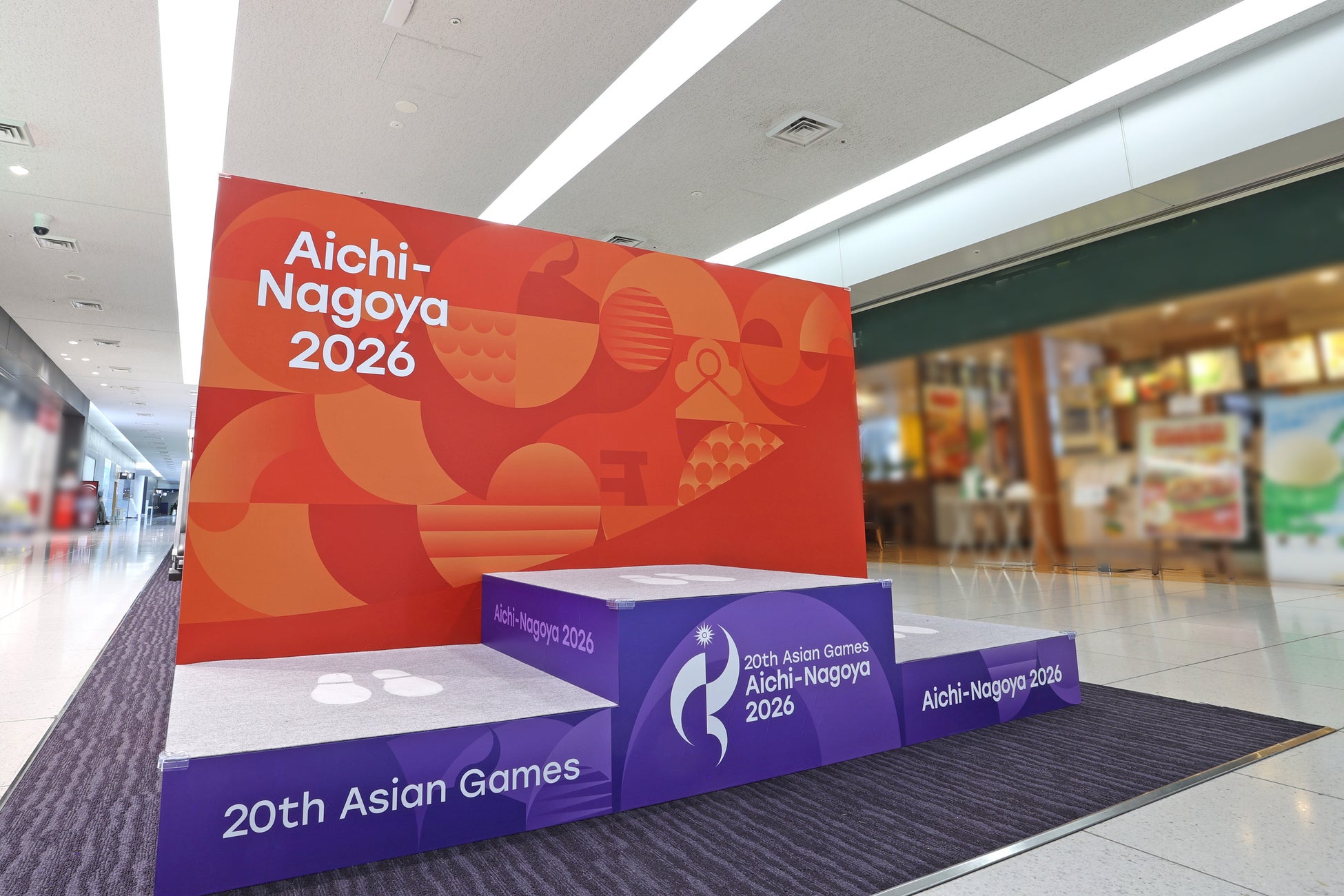 中部国際空港株式会社(所在:愛知県常滑市、代表:籠橋寛典)は、第20回アジア競技大会の公式空港として、国内外から当空港に訪れるお客様に対し、2026年9月から開催される「第20回アジア競技大会」の機運醸成を目的に、2026年2月1日(月)にアクセスプラザおよび第1ターミナル2階国際線到着ロビーにて、フォトスポットとして大会開催までのカウントダウンボードおよび表彰台を設置しました。
