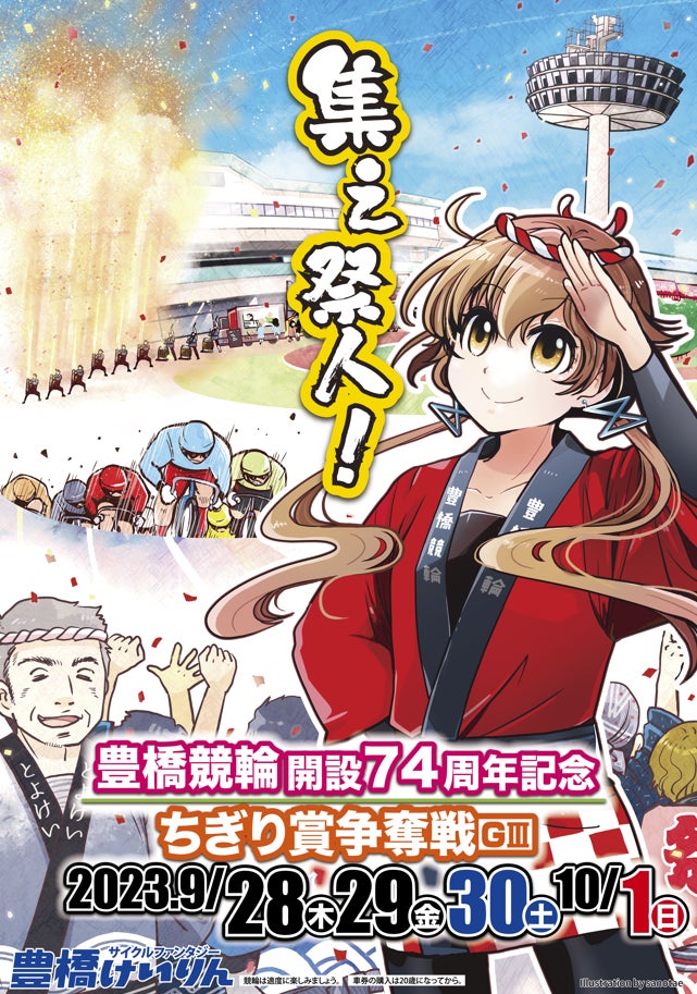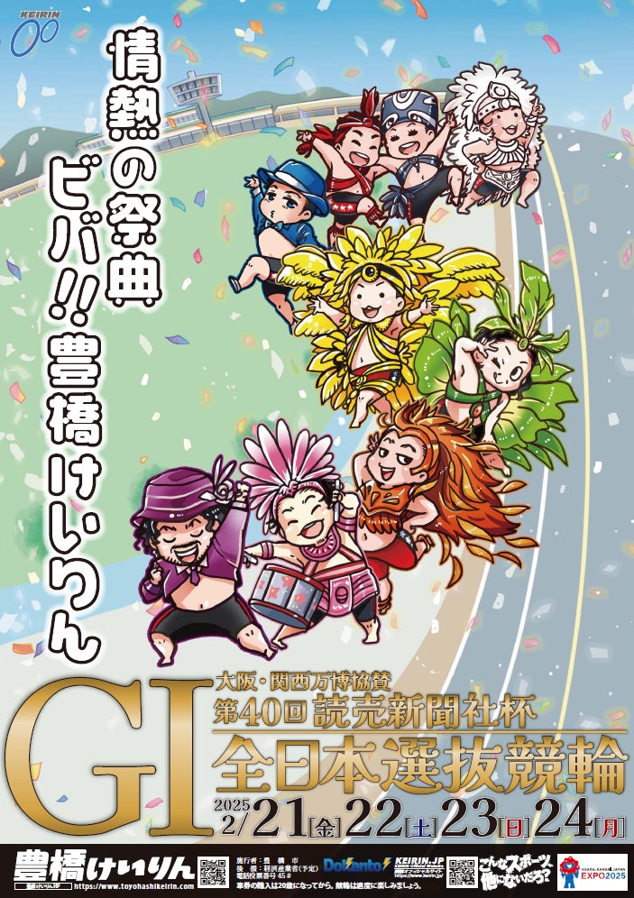 2024年2月21日(金)から24日(月・祝)に豊橋競輪場で5年ぶりの開催となるGI「大阪・関西万博協賛 第40回読売新聞社杯全日本選抜競輪」のポスターが完成しました。今回のポスターに使用するデザインは、漫画家の佐野妙先生のオリジナルです!