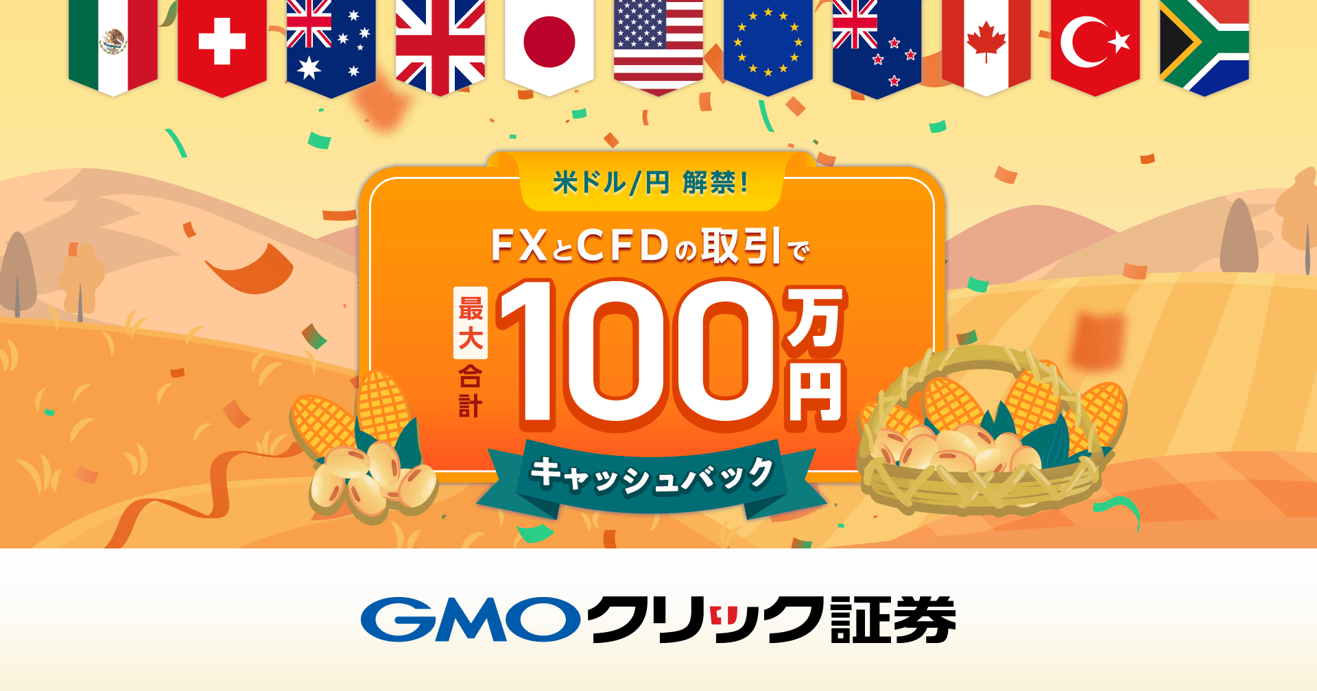GMOクリック証券:「【米ドル/円解禁】FXとCFDの取引で最大合計100万円キャッシュバック!秋の収穫キャンペーン!」を開始