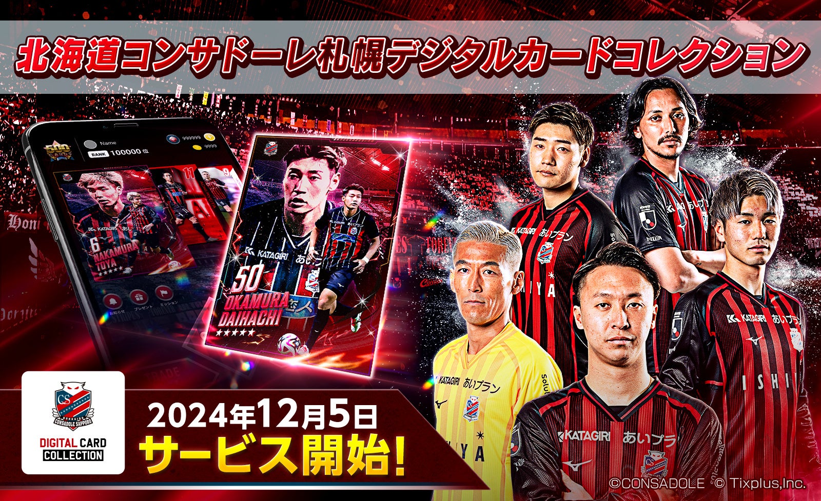 プロスポーツチームやリーグ向けのデジタルトレーディングカードサービスを開発、運営している株式会社Tixplus(本社:東京都渋谷区、代表取締役:池田 宗多朗、以下Tixplus)は、株式会社コンサドーレ(本社:北海道札幌市、代表取締役GM 三上大勝、以下、コンサドーレ)と共同で、公式デジタルカードサービス「北海道コンサドーレ札幌デジタルカードコレクション」を2024年12月5日(木)より提供開始します。(URL:https://consadole-digitalcard-collection.com)