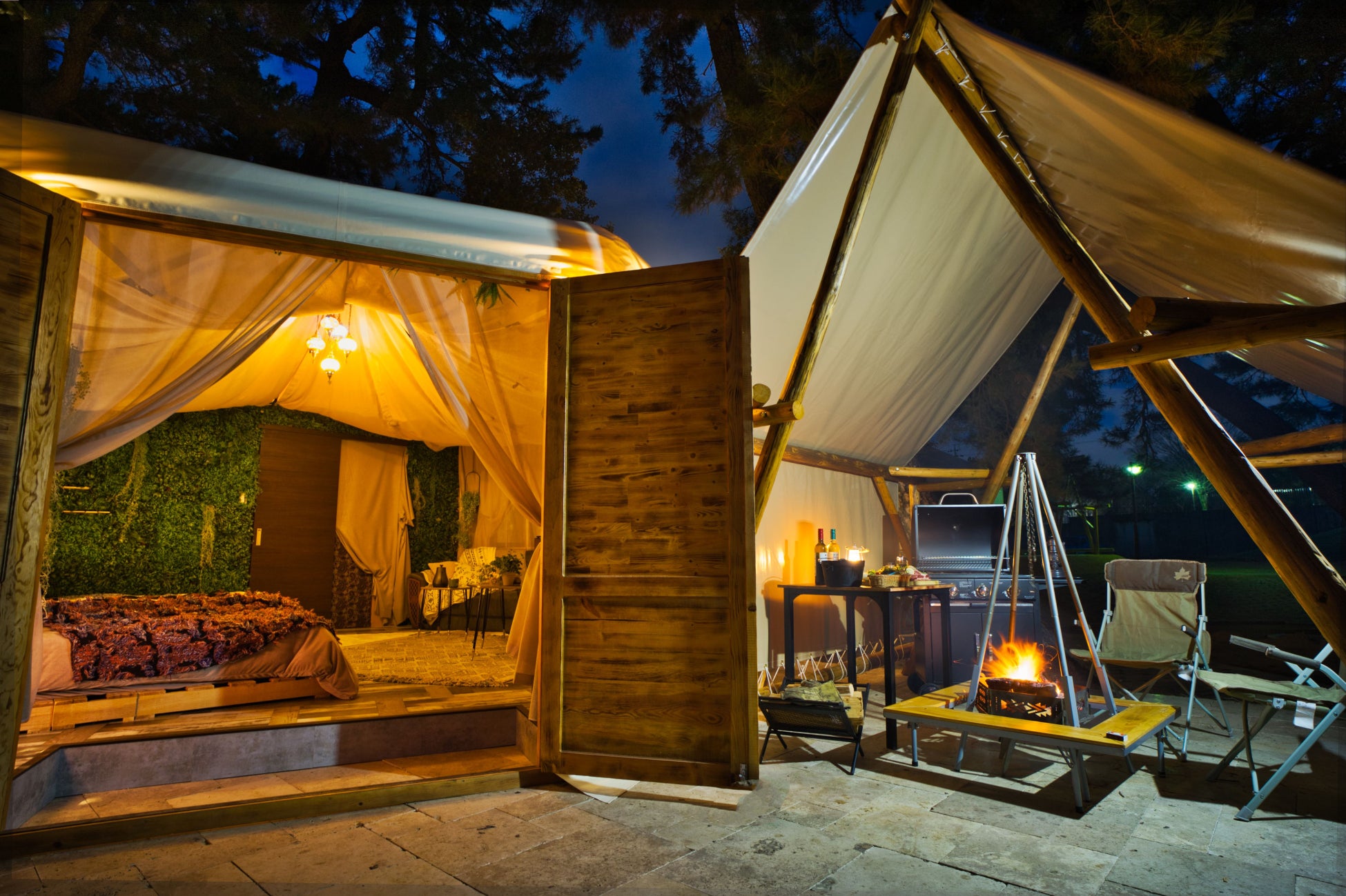 トルコ製のグランピングテントを1日1組限定で貸切にできる、人気の日帰りグランピングプラン。