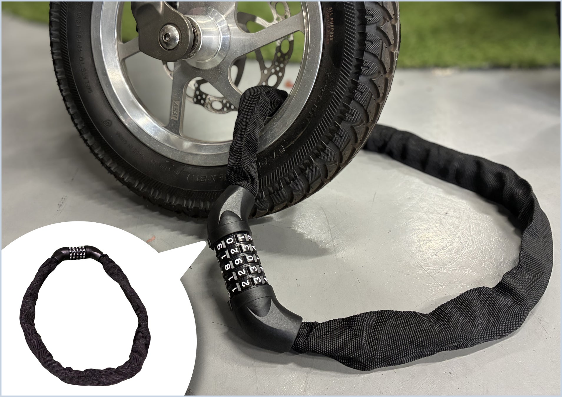 ・チェーンロックについて:「スマートEV」 / 「スマートEV 特定原付モデル」は、前輪のみ使用可能です。