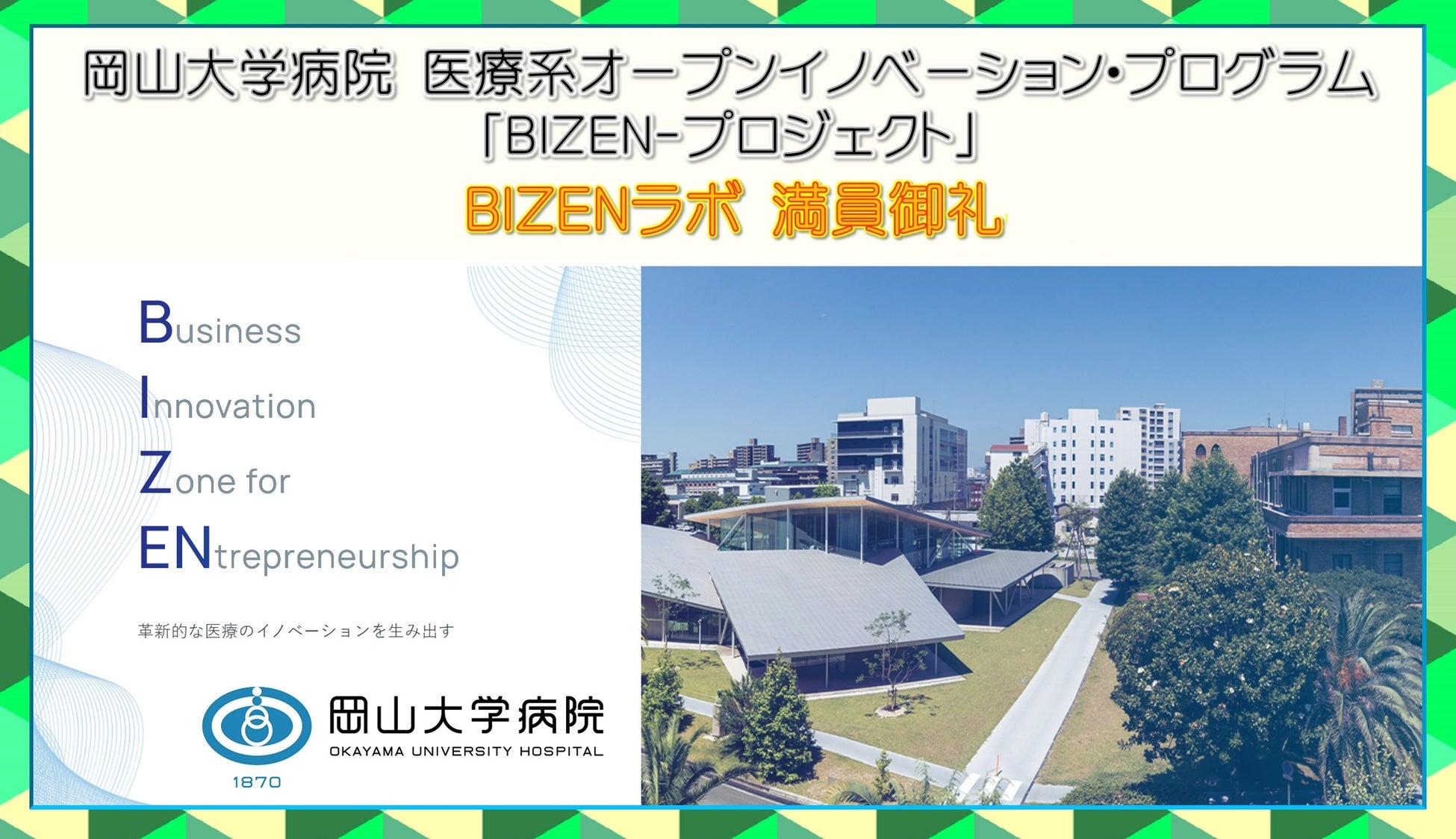 【岡山大学】岡山大学病院医療系オープンイノベーション・プログラム「BIZEN-プロジェクト」BIZENラボ 満員御礼