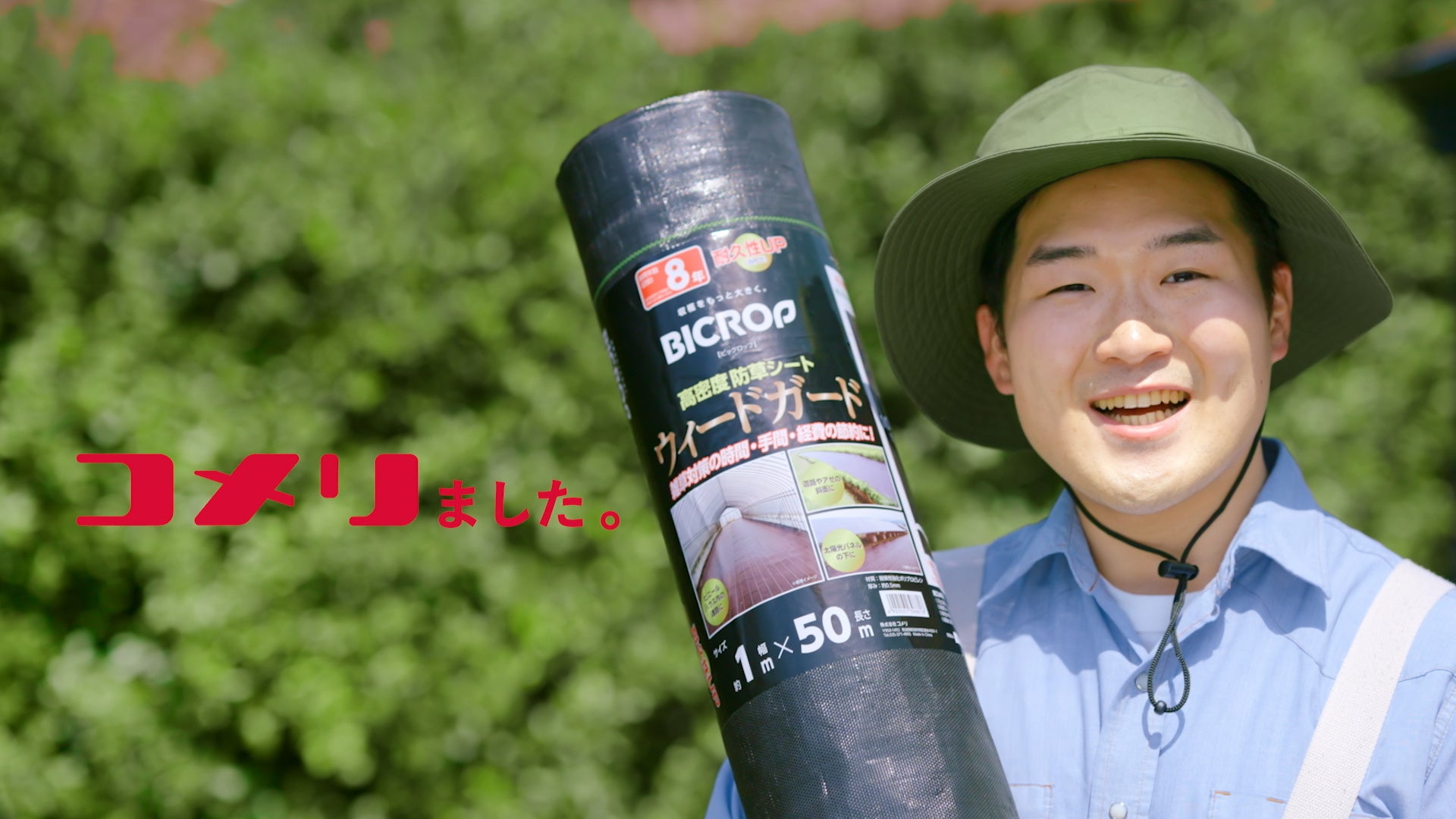 「雑草篇」は放っておけばどんどん育つ、“雑草”をテーマにしたCMです。除草作業についてのお困りごとをコメリが解決。雑草の高さや範囲に合わせて、必要なものを品揃えしております。