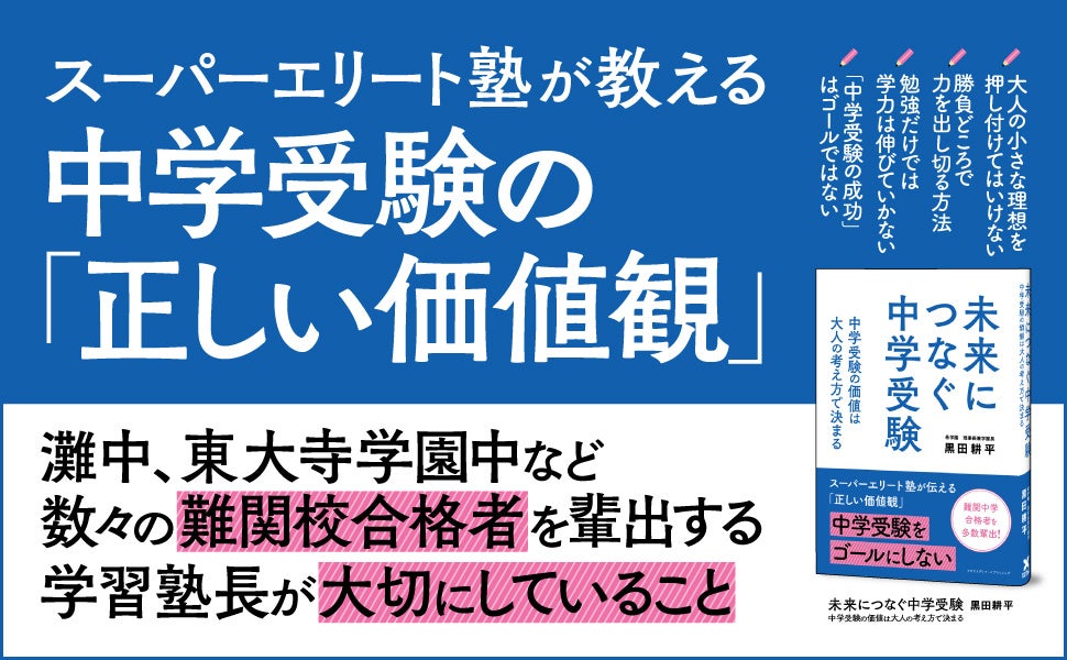 【スーパーエリート塾が教える正しい価値観とは】灘中や東大寺学園中など、難関中学合格を突破するための考え方をまとめた『未来につなぐ中学受験 中学受験の価値は大人の考え方で決まる』本日発売