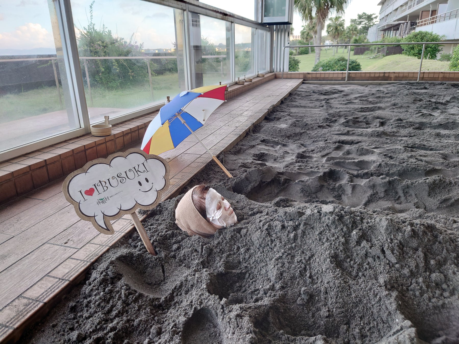 指宿名物・砂むし温泉でお肌もメンテナンス 休暇村指宿では、ホテルの砂むし温泉「癒砂(ゆさ)」で「ひんやり顔パック」サービスを8月9日より提供開始