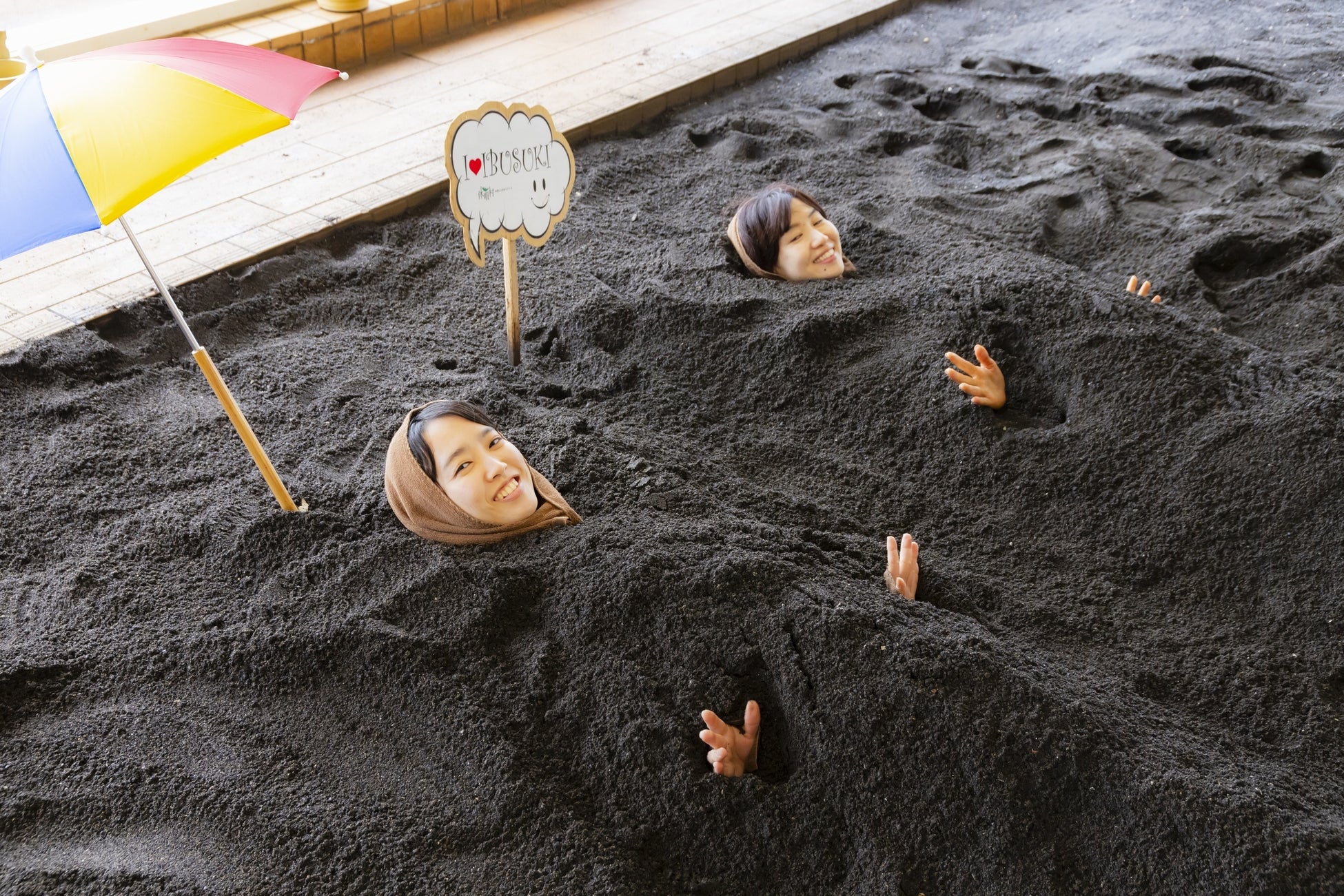 指宿温泉に300年以上前から伝わる世界的にも珍しい温泉で、温かい砂に身体を埋めて蒸らす温泉です。①寝転んで砂に埋まるため、頭、足先、心臓の位置が平行になり、血液の循環が良くなること、②砂の圧力で心臓から送られる血液量が増加することから、通常の温泉の3倍もの効果が期待できます。