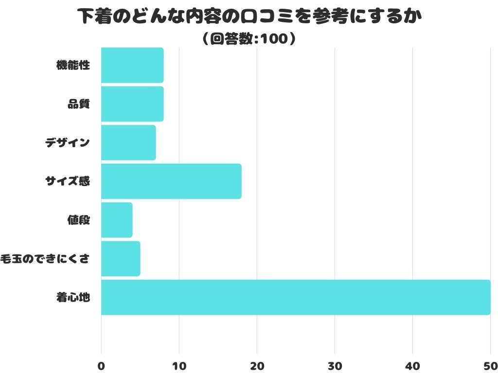 下着は肌に直接触れるものなので、着心地を重視する人が多いことが分かります。